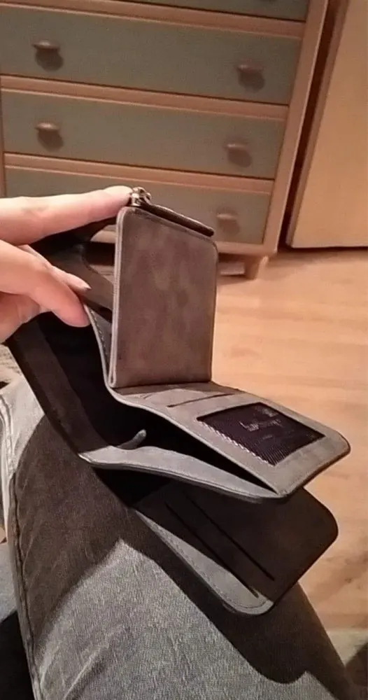 Очень приятный на ощупь, хорошо сделанный кошелек. Доставка довольно быстрая, никаких проблем.