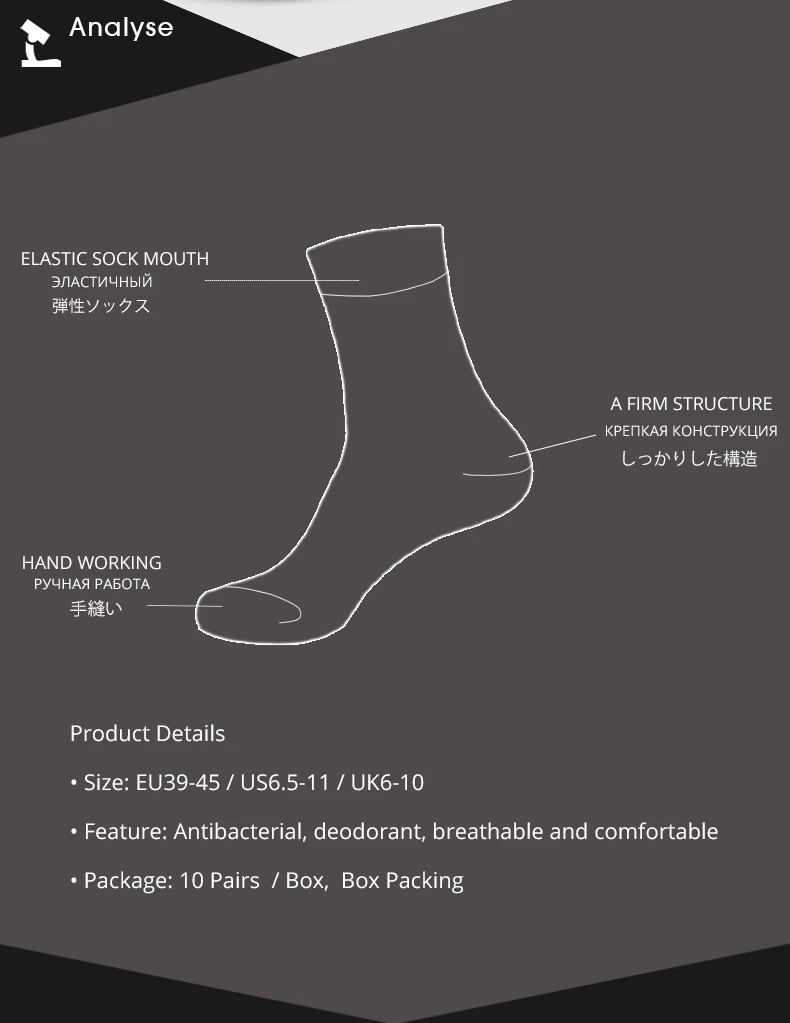 Носки мужские, из бамбукового волокна, 10 парЛот, размера плюс, EUR39-45