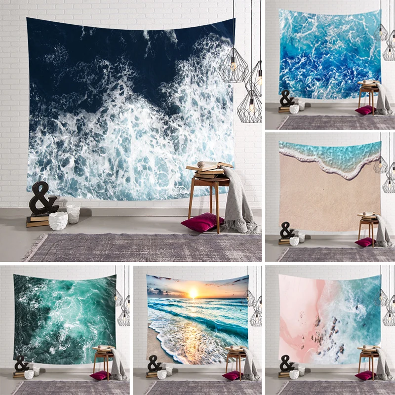 Морской пейзаж, гобелен с волнами, пейзаж, настенный пляжный гобеле...