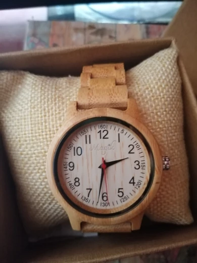 Описание точное. Часы классные, действительно из бамбука. Своих денег, думаю, стоят. Браслет очень длинный, придётся укорачивать, иначе с женской руки просто слетят. Коробочка и маленькая подушка смотрятся мило, готовый подарок в упаковке. Для всех любителей Эко-темы и натуральных материалов - то, что надо. В Омск доехали за 29 дней. :)