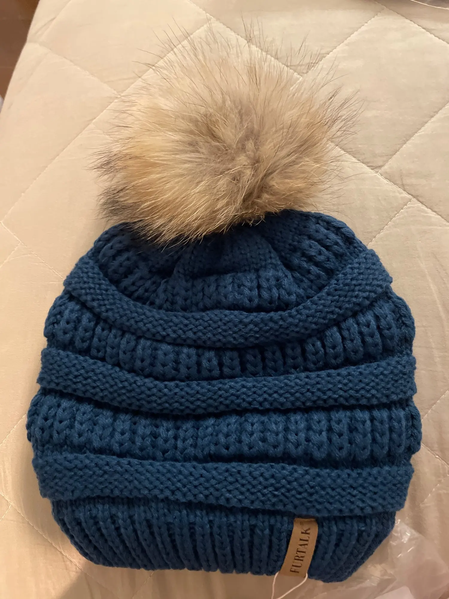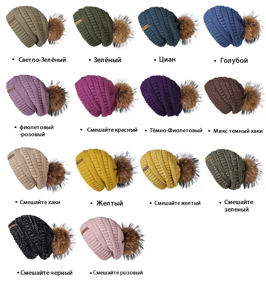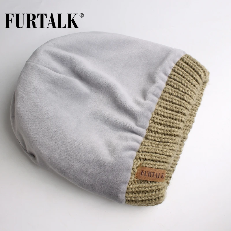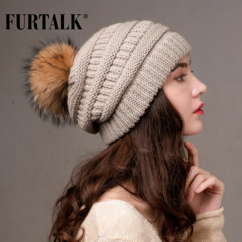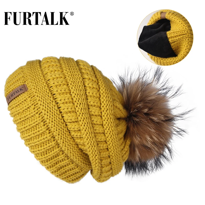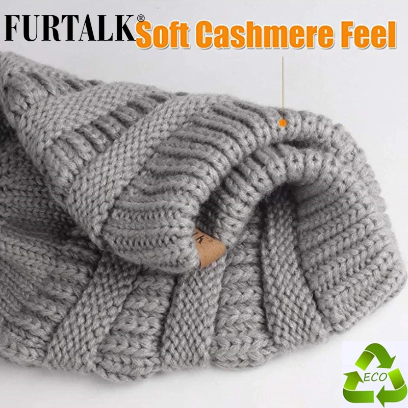 Зимняя шляпка с помпоном FURTALK Женская вязаная шапка с бархатными дамами Трикотажная из натурального меха с помпонами Эластичная шляпа Женские теплые шали