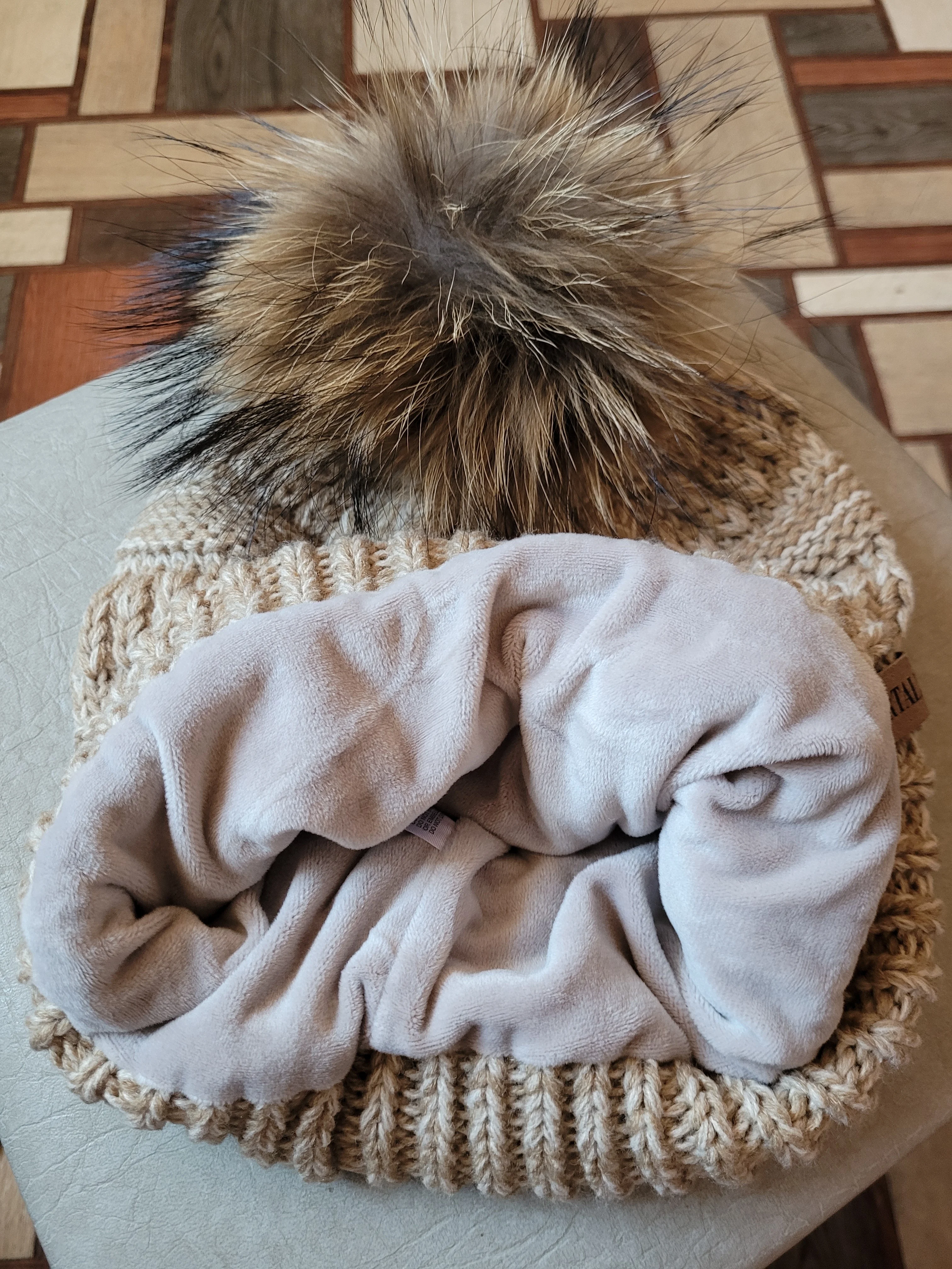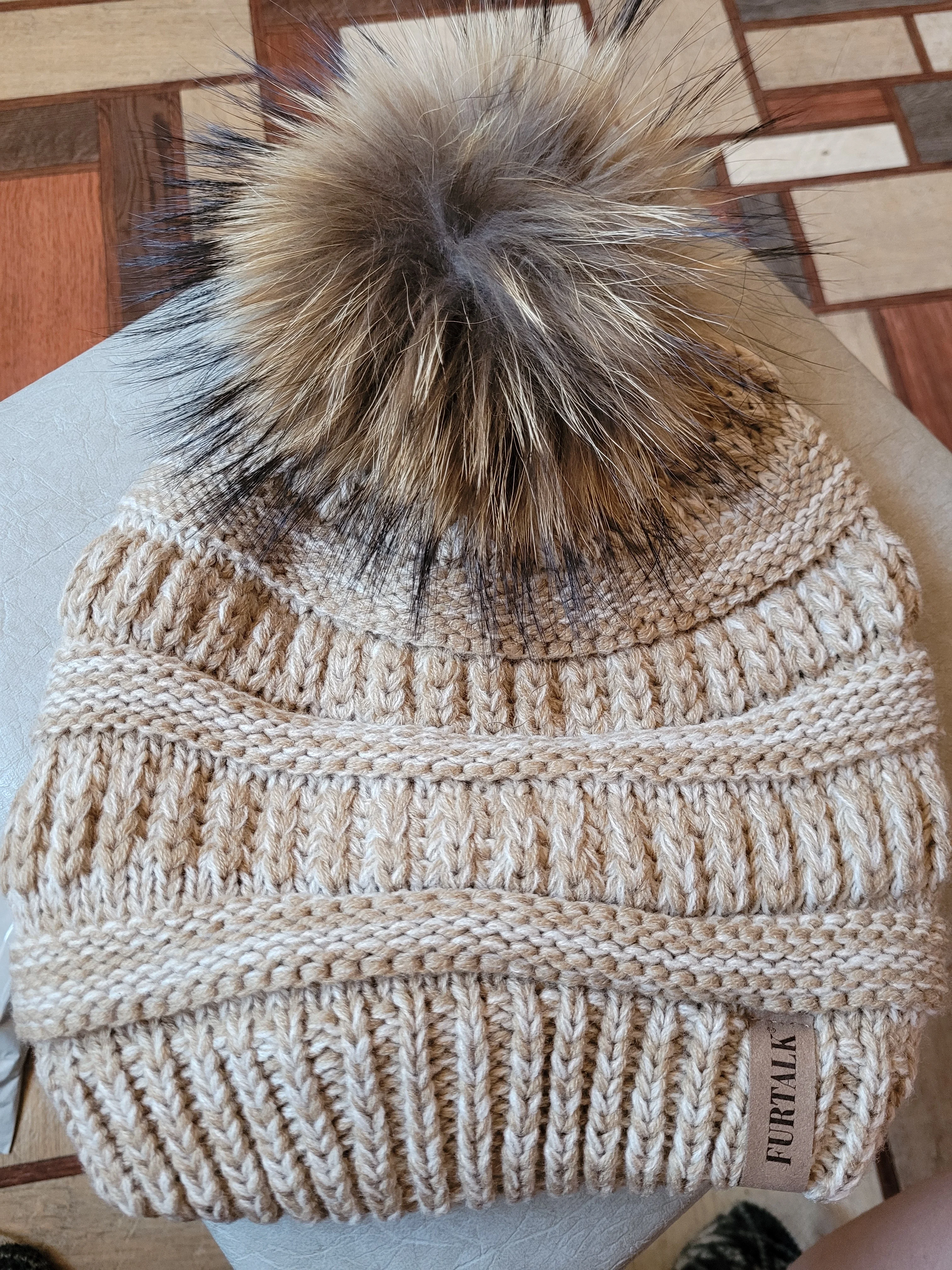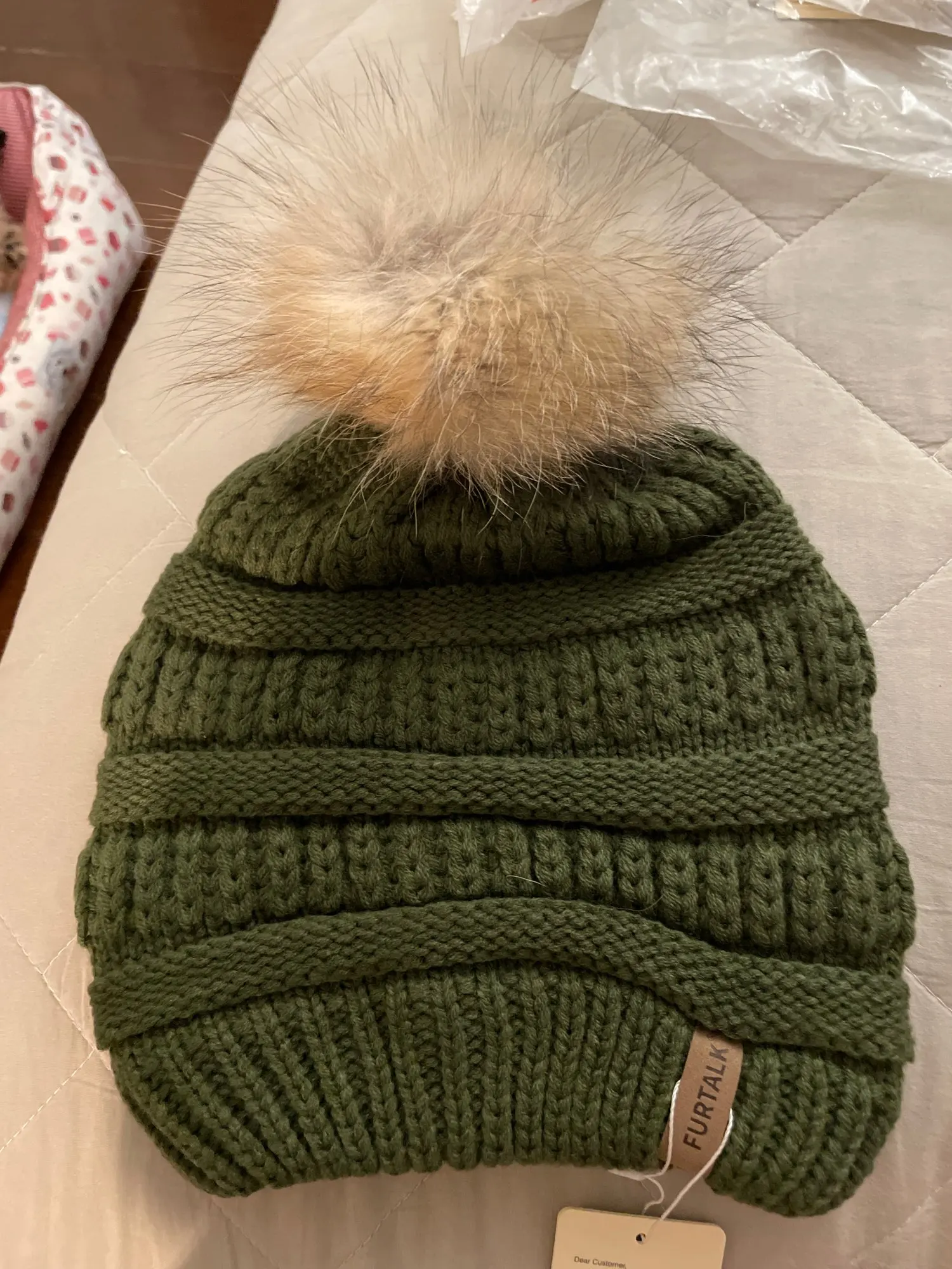 Зимняя шляпка с помпоном FURTALK Женская вязаная шапка с бархатными дамами Трикотажная из натурального меха с помпонами Эластичная шляпа Женские теплые шали