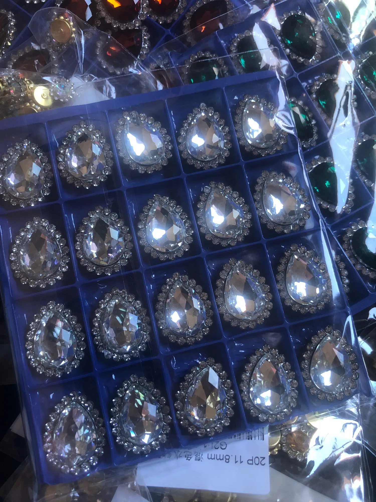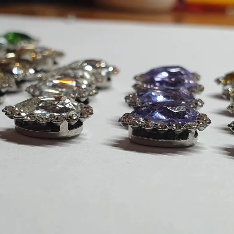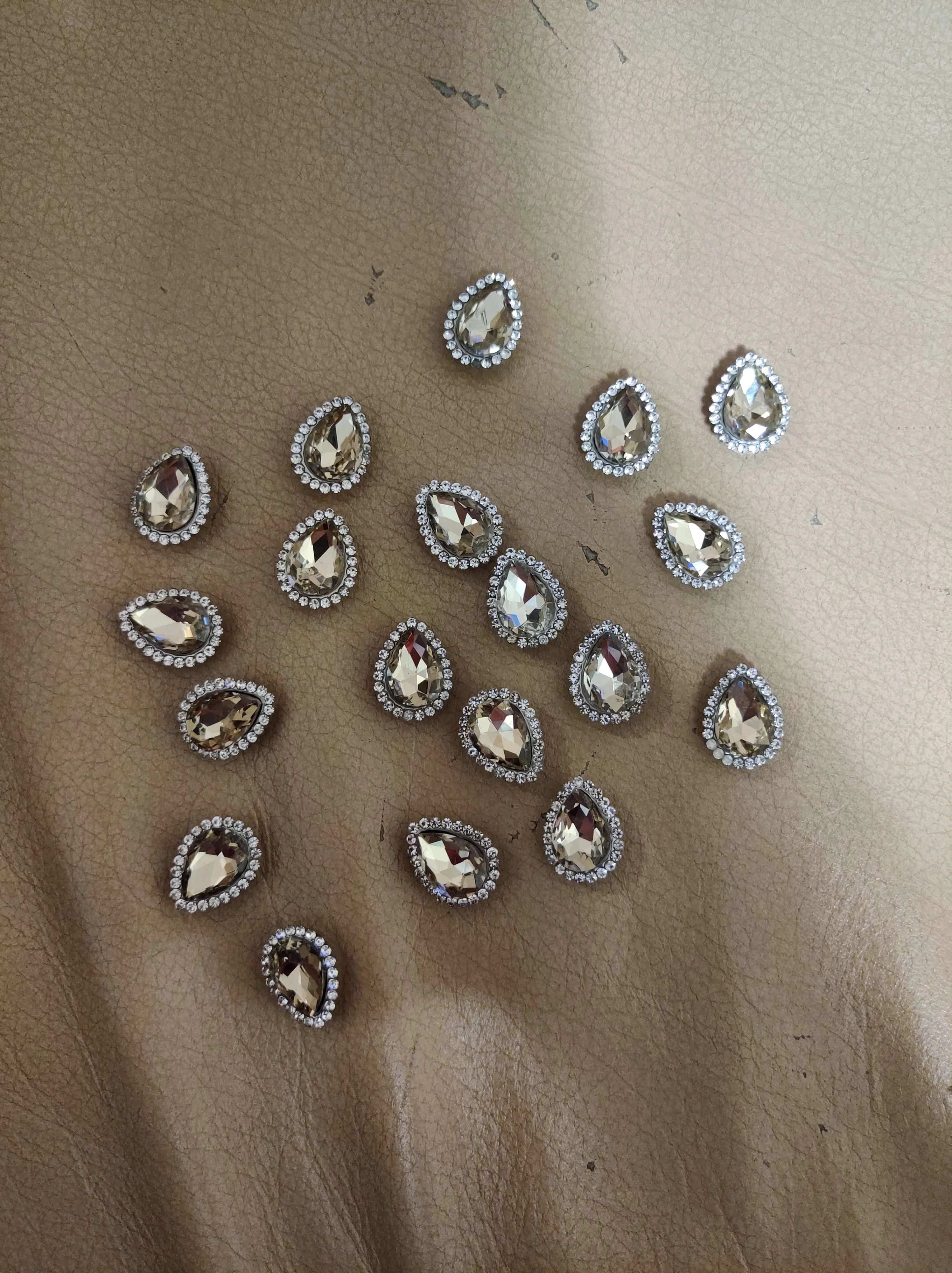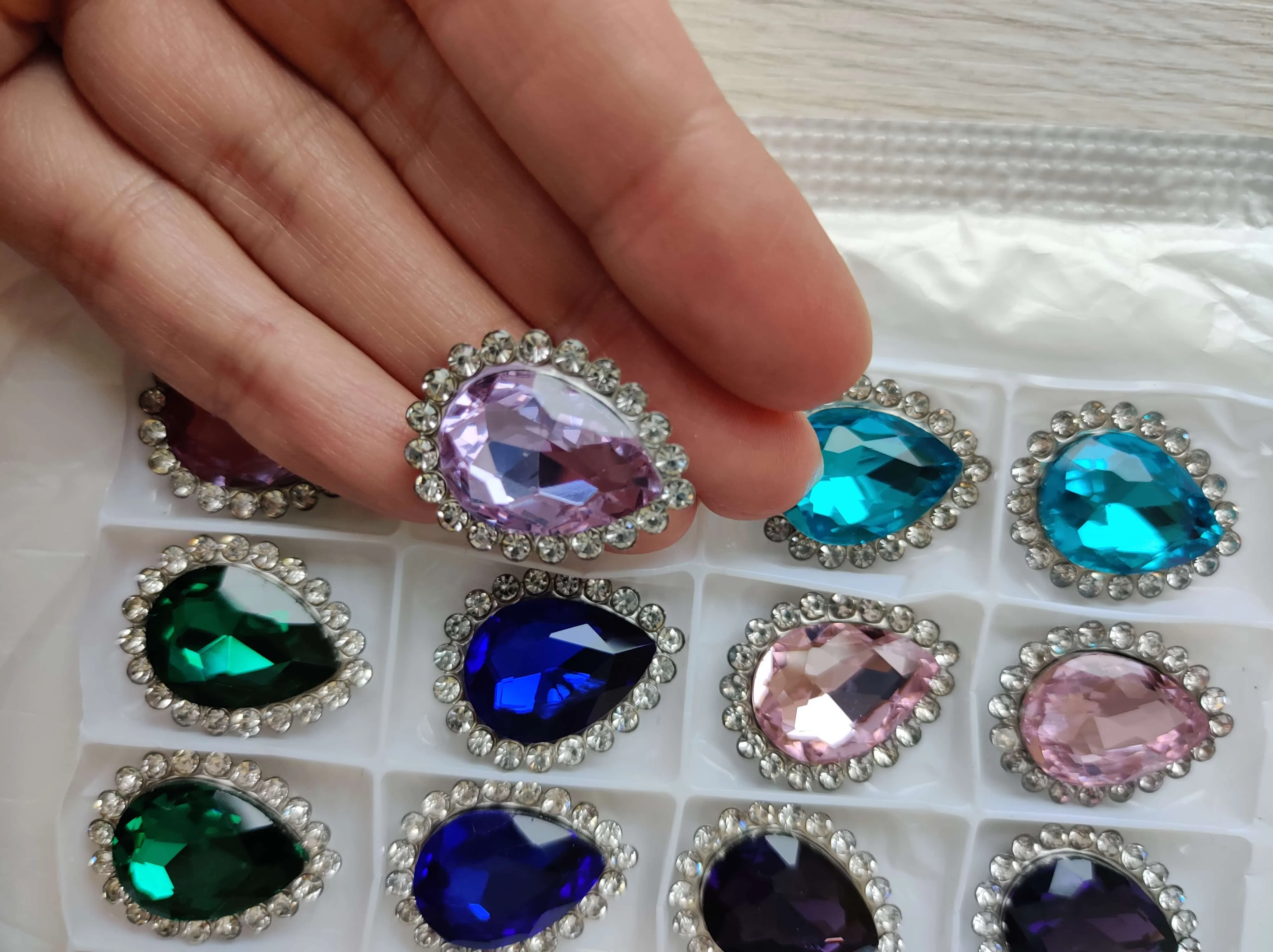 В описании указаны размеры не всей стразы, а размер центрального камня. Заказала размер 7*10 мм. Пришел этот микс, но полный размер 11*14 мм. В целом симпатичные, хотя цвет топаз у меня весь бракованный - криво приклеены центральные камни. Основание ровное, блестят симпатично.