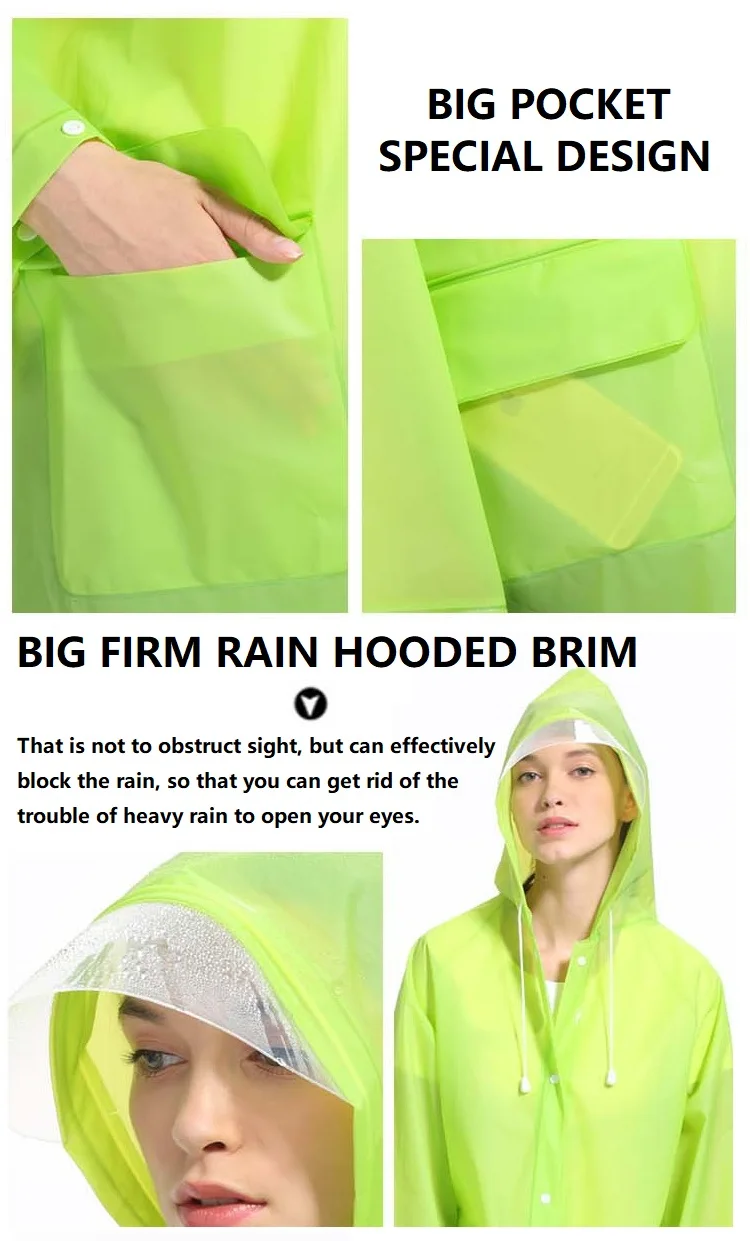 Дождевик для взрослых унисекс, мужская и женская дождевая куртка, водонепроницаемое пончо с капюшоном, плащ из ЭВА многоразового использования, однотонная верхняя одежда, спортивная одежда
