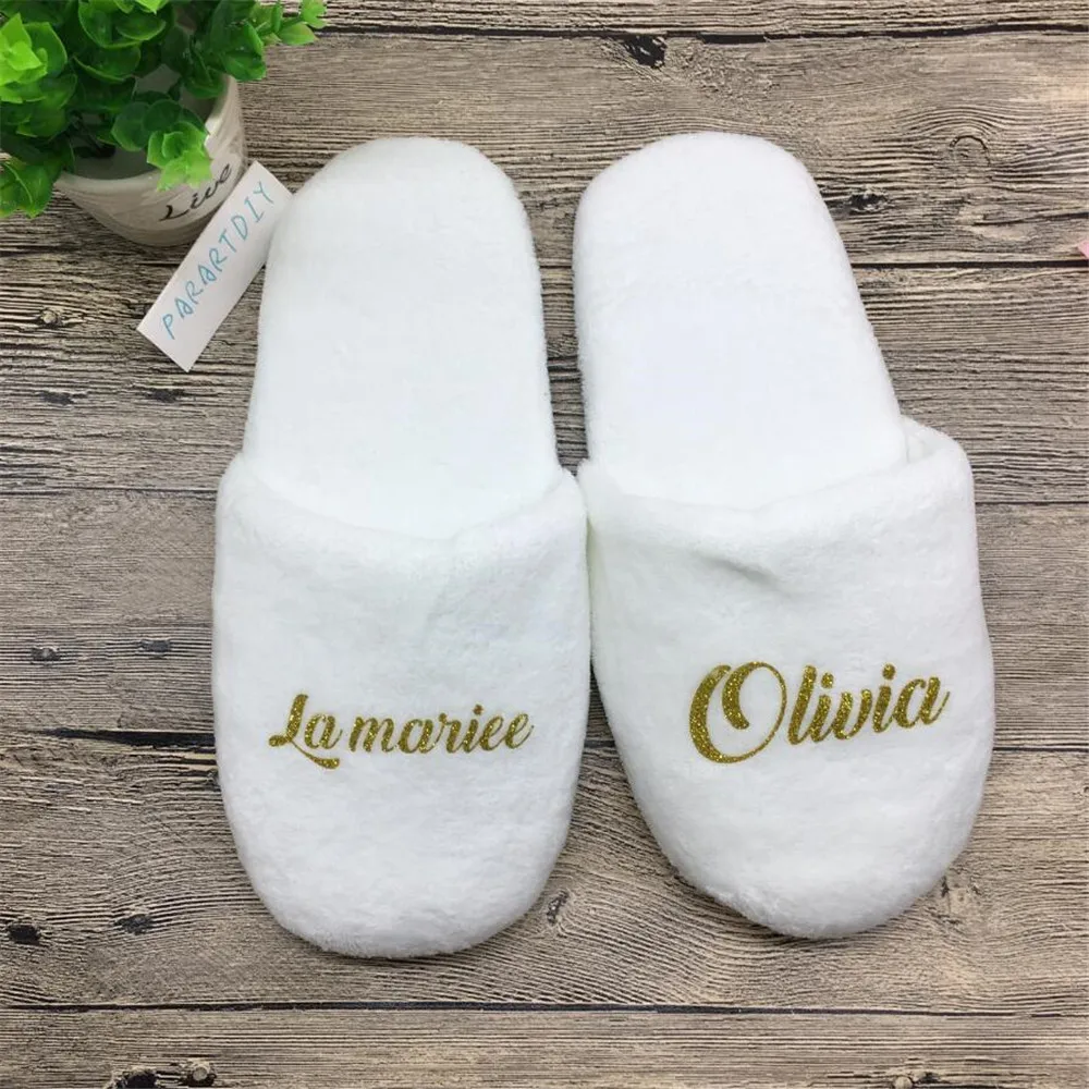 5 пар в партии; Индивидуальные бархатные свадебные тапочки для невесты и подружки невесты; Подарок на день рождения; Девичник; Вечерние подаркиUSD 4,57-31,04/Лот