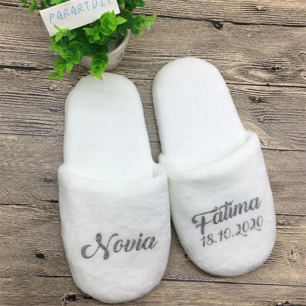 Тапочки для подружки невесты; Индивидуальные свадебные тапочки; Вечерние шлепанцы для невесты; Тапочки для невесты; Спа-Тапочки