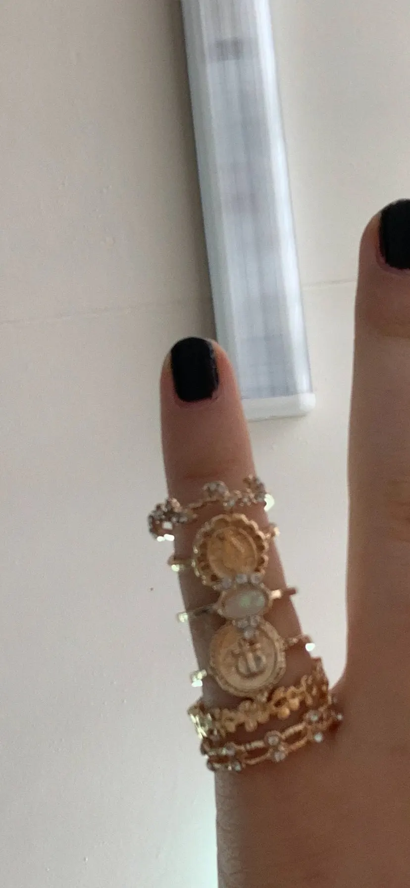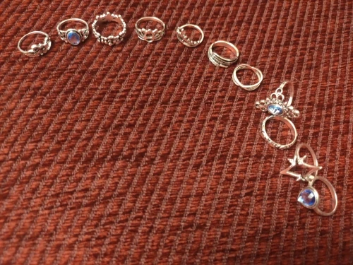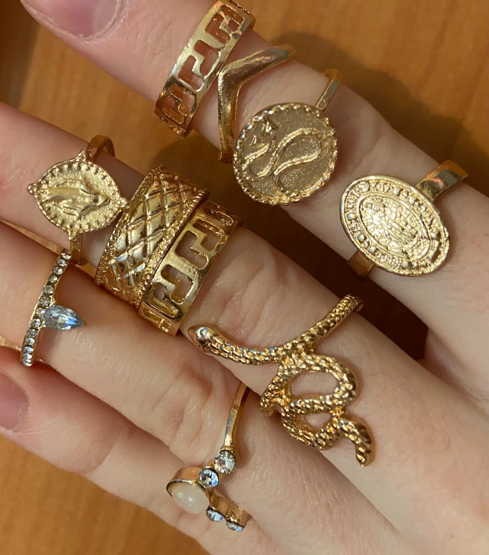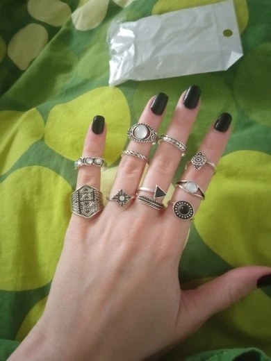 Мне действительно очень нравятся кольца! Они выглядят потрясающе, и детали очень хороши, особенно по цене :) я получил точно такие же кольца, хотя и увидел, что размеры отличаются от тех, что на картинке, но я действительно не против. Я действительно рекомендую этот комплект! (Я кладу как можно больше на руку, но есть еще некоторые)