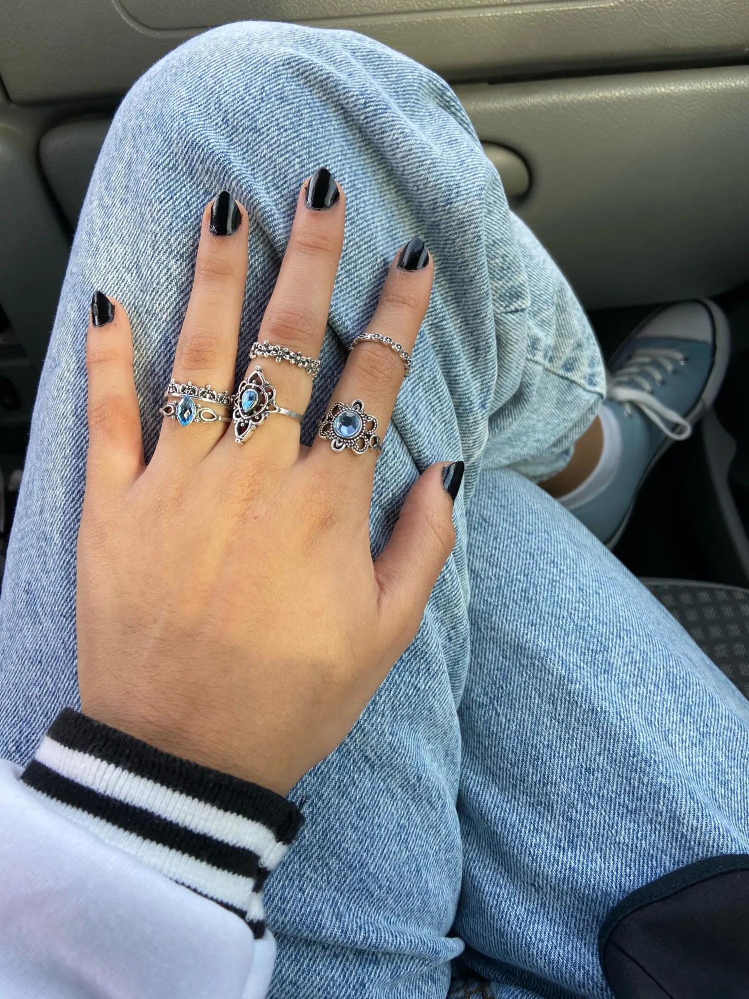 Одно из колец уже начало оставлять черные следы на моей руке через минуту после того, как надел их, но в целом они красивые. Только 1 большое кольцо не подходит