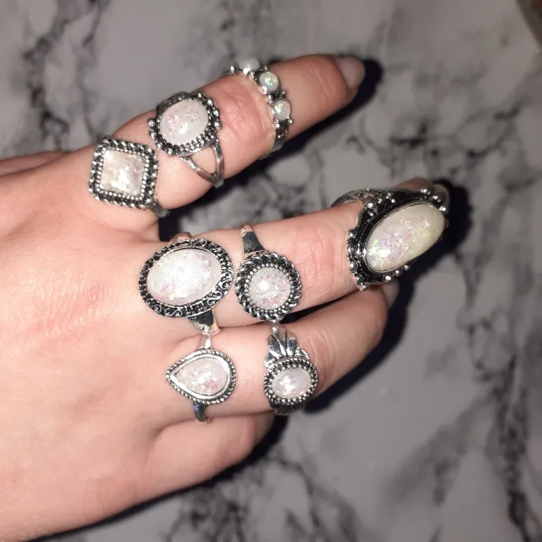 The rings I got were just like the ones in the picture, so I'm really happy about it. The only thing, is that they will fit well if you have medium to large fingers, if you have small hands some of them won't fit on you.