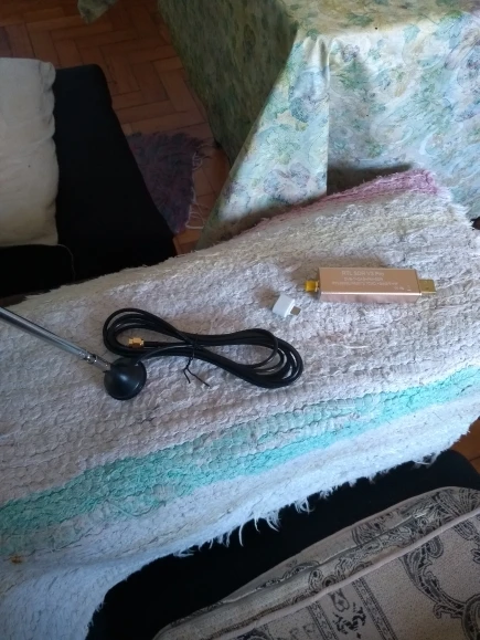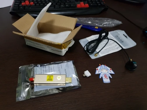Получил, всё работает, устанавливал по ютьюбу, так как достаточно сложно разобраться в установке драйверов и пороги. Антенна никакущая, так чисто для проверки работоспособности. Продавец положил переходник usb на miniUSB.