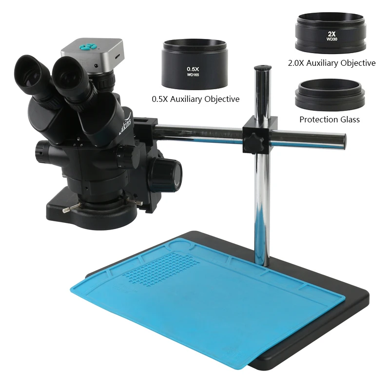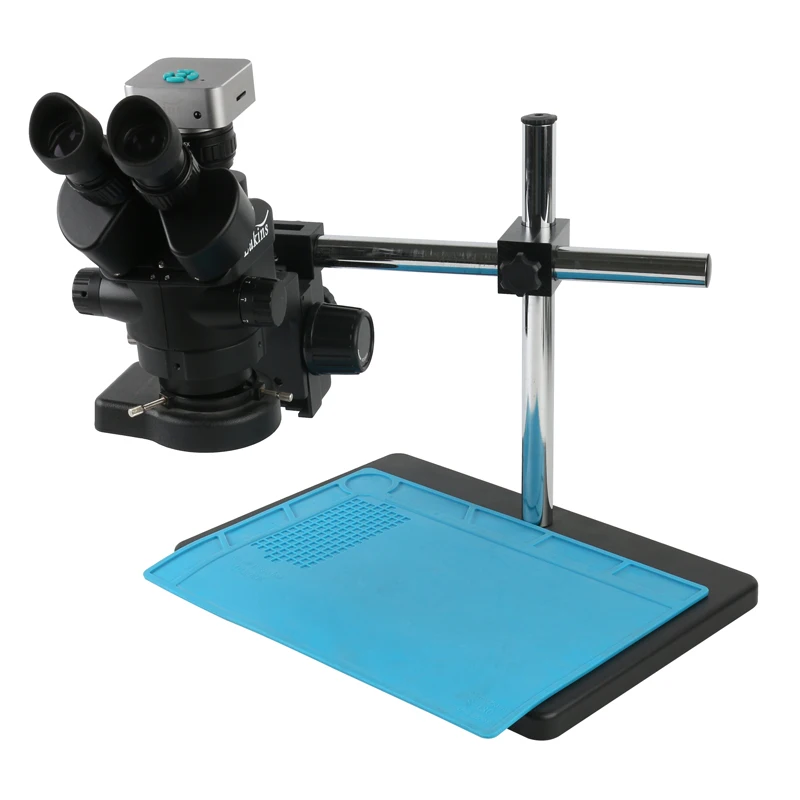 Многофокусный Тринокулярный стереомикроскоп 7X-45X с постоянным зум...