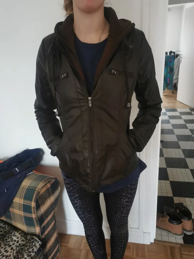 Куртка воняет сильно после пластмассы или резины. Помыли ли вы, и 2 дня на свежий воздух повешены... вы все еще воняет, страстно... как возраст autopneu. Также очень вас блестит. Вы можете увидеть на фото. Крой, хороший размер. Слишком плохой материал, такой токсичный, воняет и выглядит.