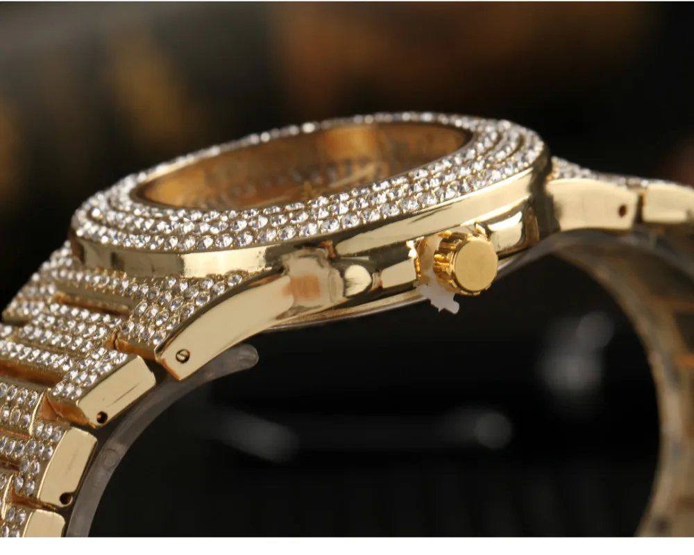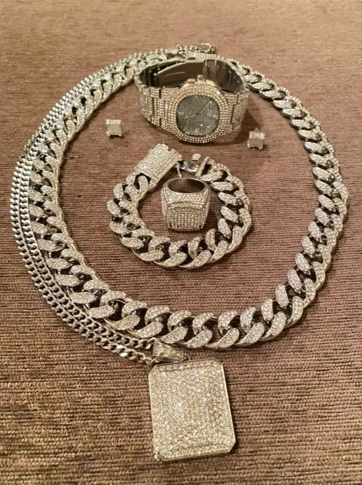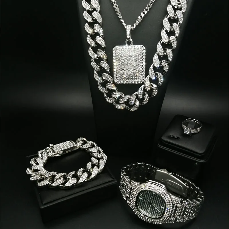Роскошные мужские часы, ожерелье, подвеска, браслет и кольцо золотого и серебряного цвета, комплект из кубинской цепи и кольца в стиле хип-хоп для мужчин