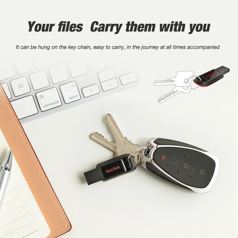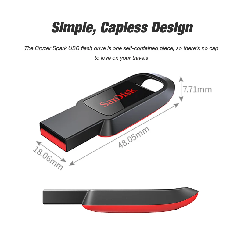 Контурная конструкция флеш-накопителя USB Cruzer Spark имеет петлю для ключей, поэтому она может легко путешествовать с вами в любом месте.