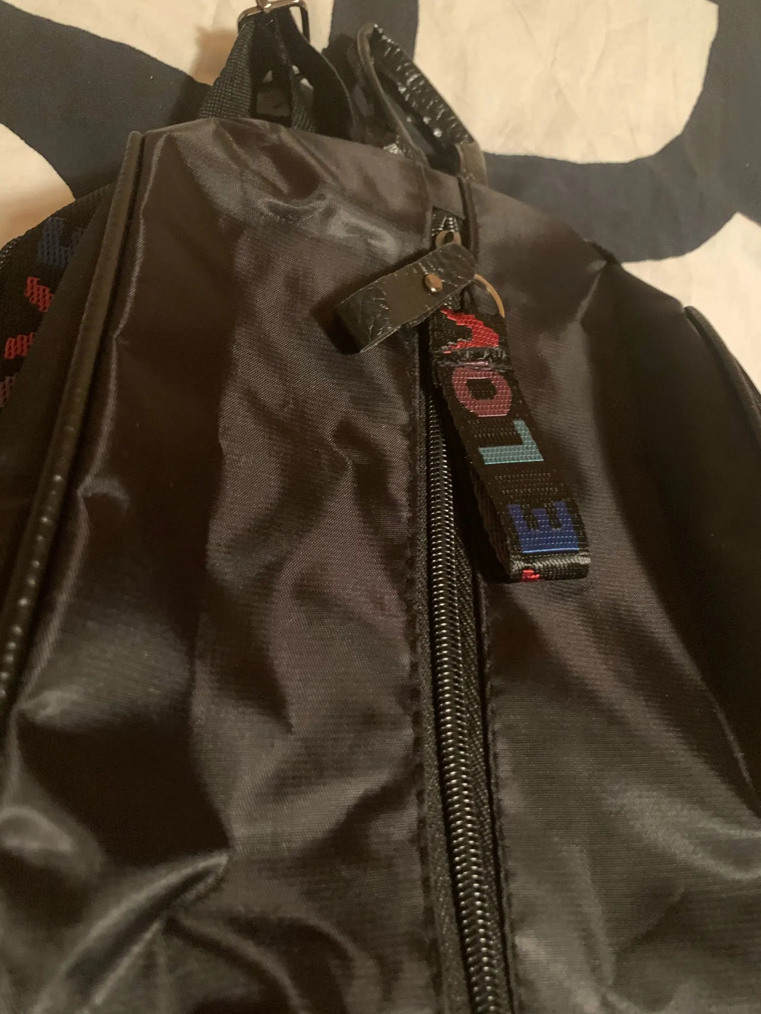 Рюкзак пришёл маленький, намного меньше, чем представлялось, но думаю буду тестить в поездки. Телефон, косметичка, кошелёк, вылазят. Брелок чепляеться на застежку.