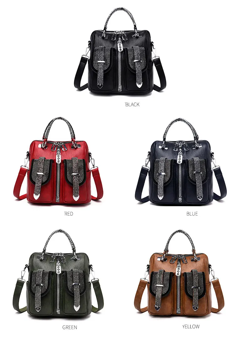 Рюкзак женский, 3 варианта использования, с бриллиантами, школьный, дорожный