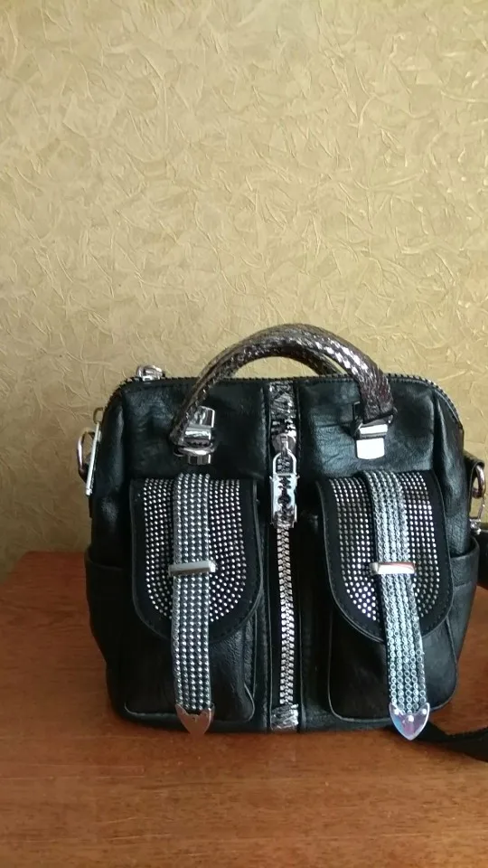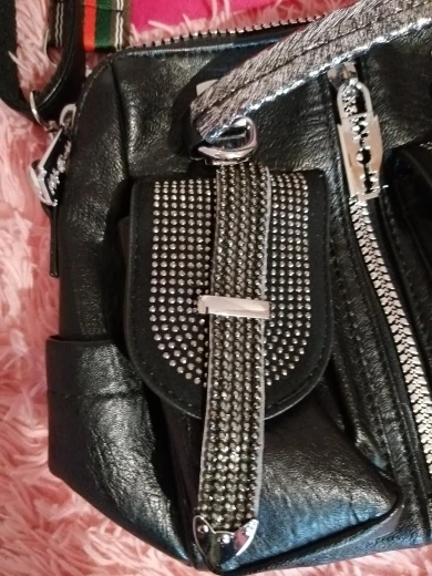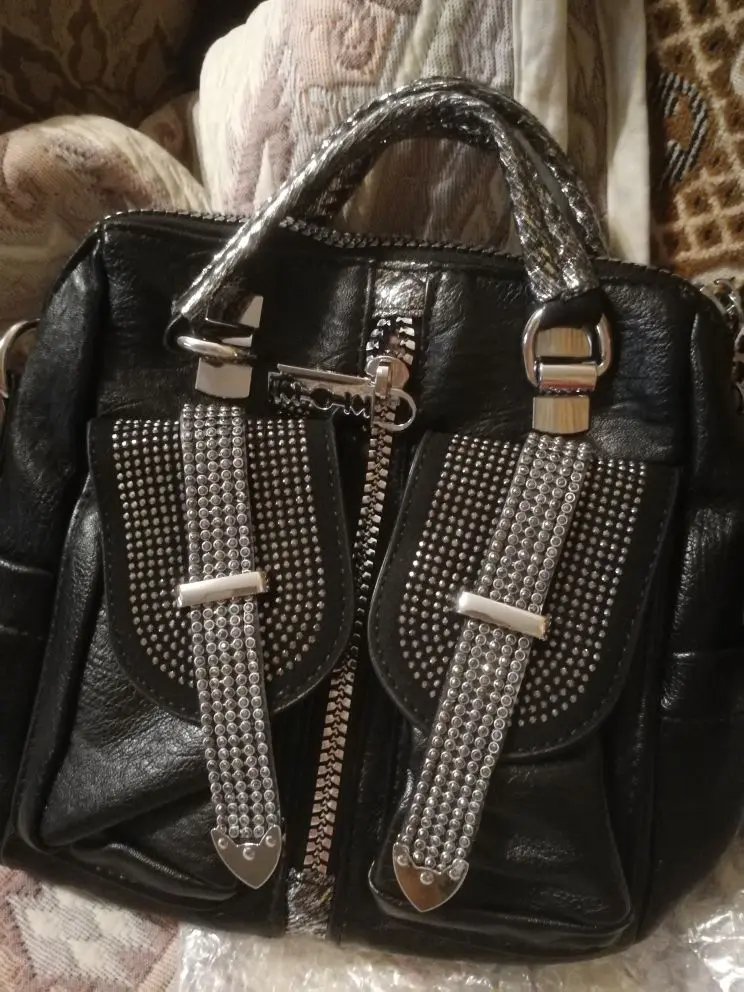 По качеству сумка отличная! Все стразы на месте, замки работаю, швы ровные, торчащих ниток нет и запаха тоже. Изготовлена из мягкого кож.зама, по ощущениям напоминает кожу. Доставка в Белгородскую область быстрая-заказана 01.10. получена 19.10. Рекомендую к покупке и товар, и магазин.