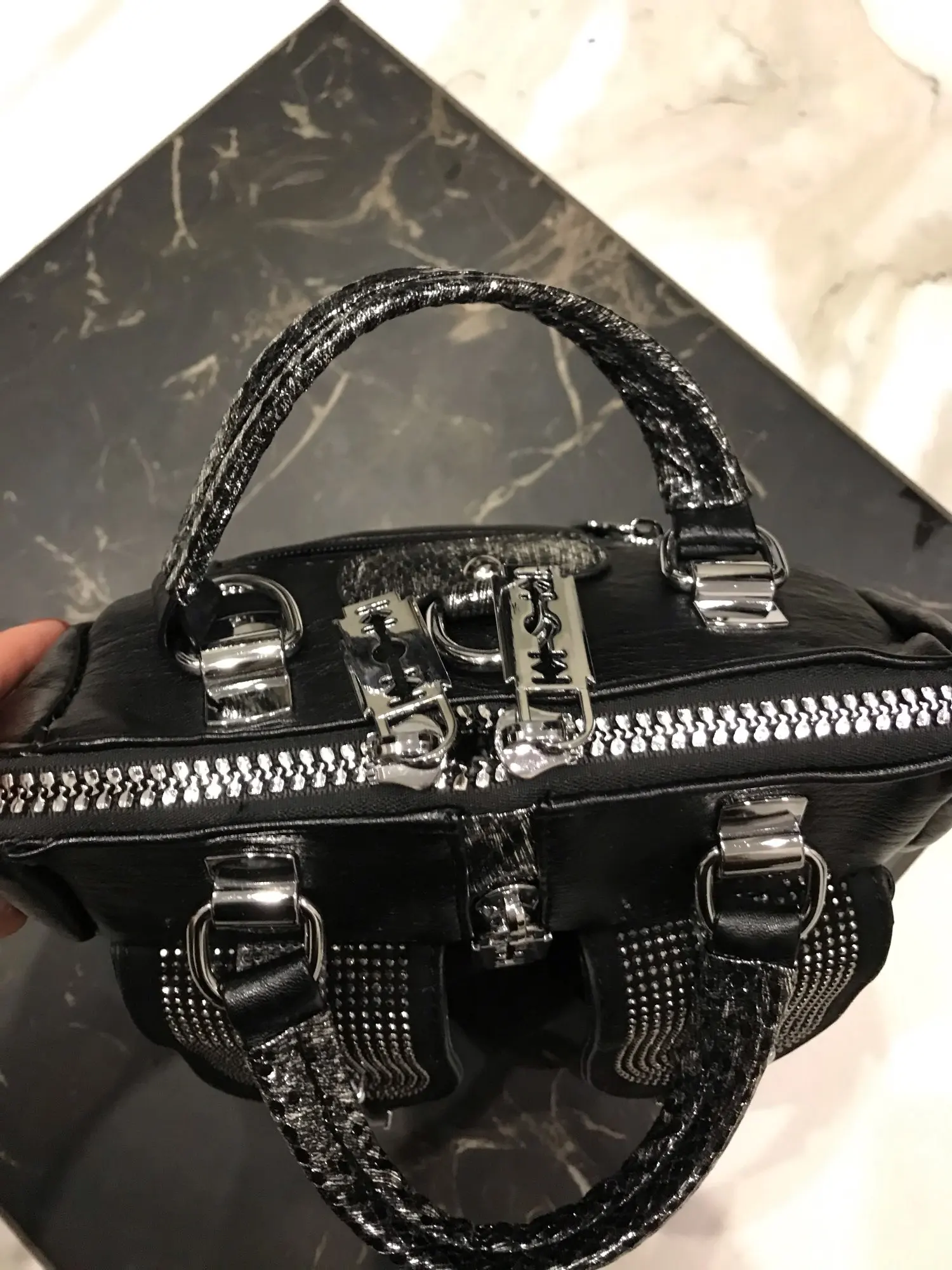 Сумочка очень маленькая. Если убрать блестящие ручки, то вполне приличная.