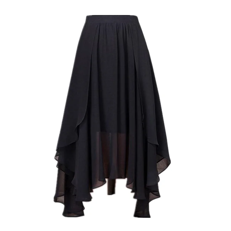 Ассиметричная юбка для девочек, размера плюс-6XL, 7XL, яркие цвета, длинные шифоновые юбки белого, черного, красного цветов, для вечеринок