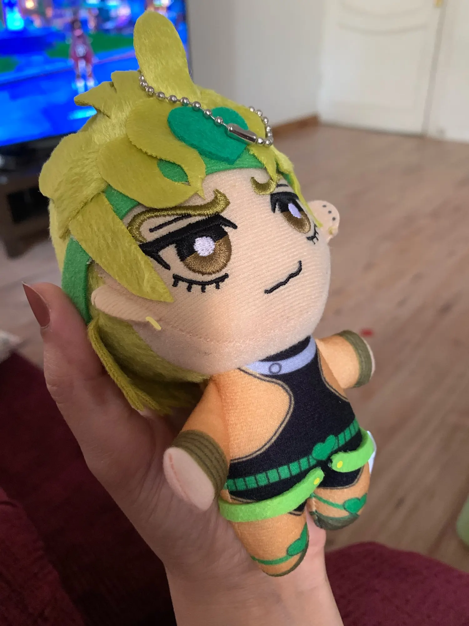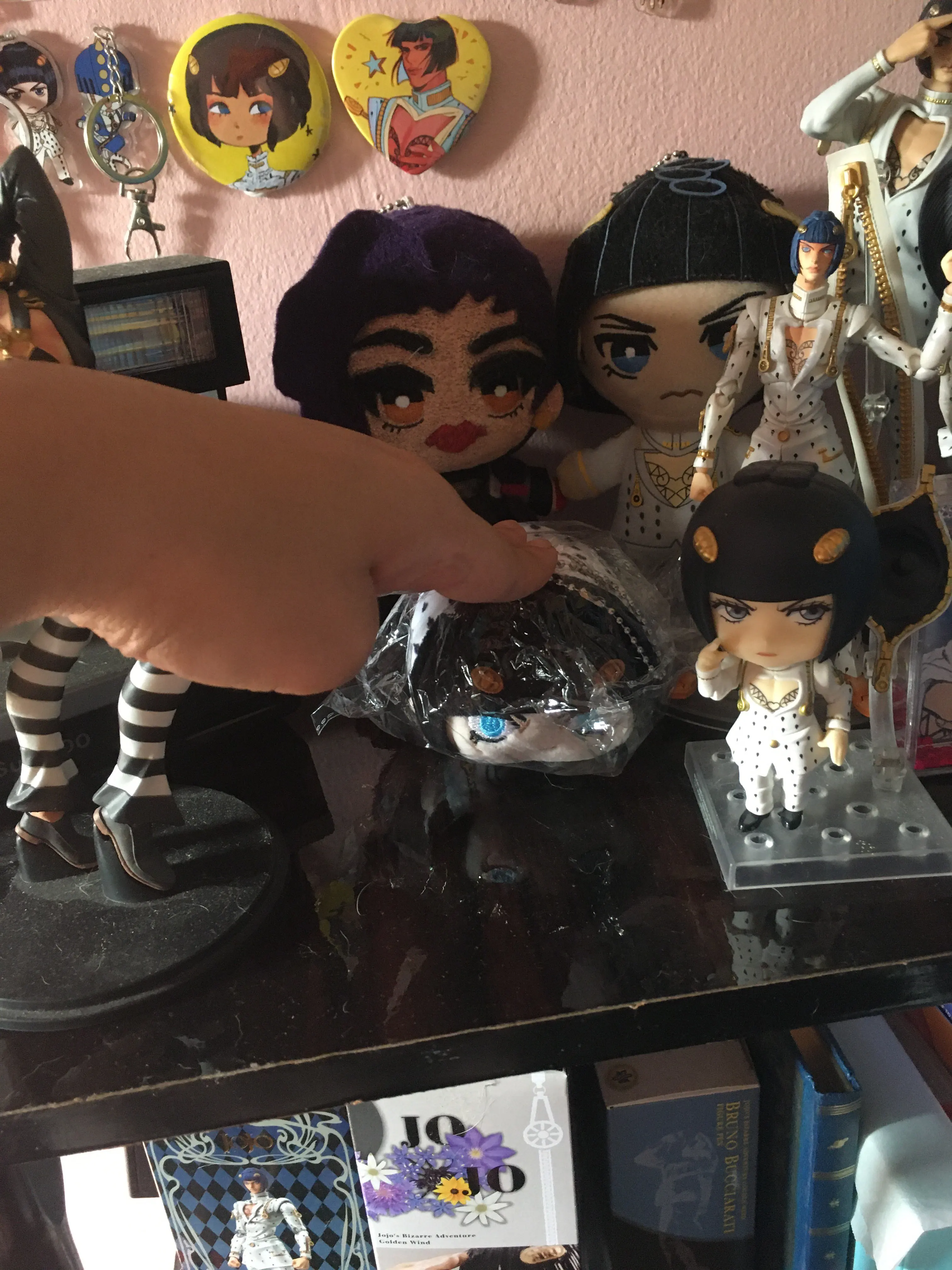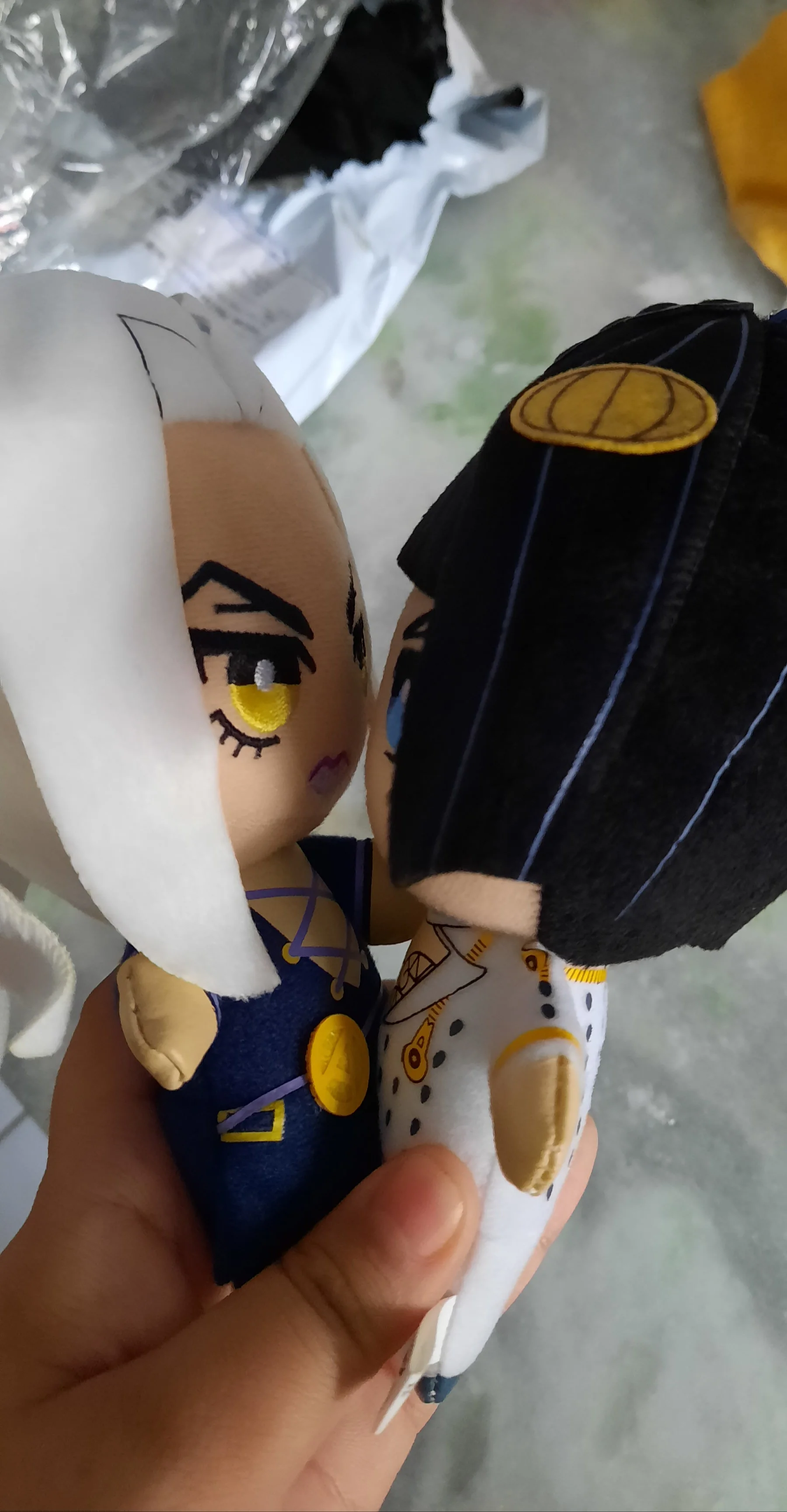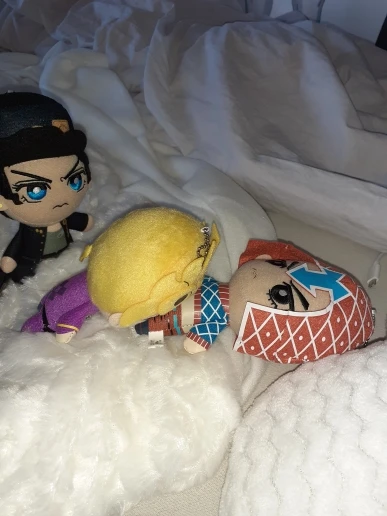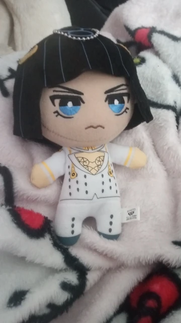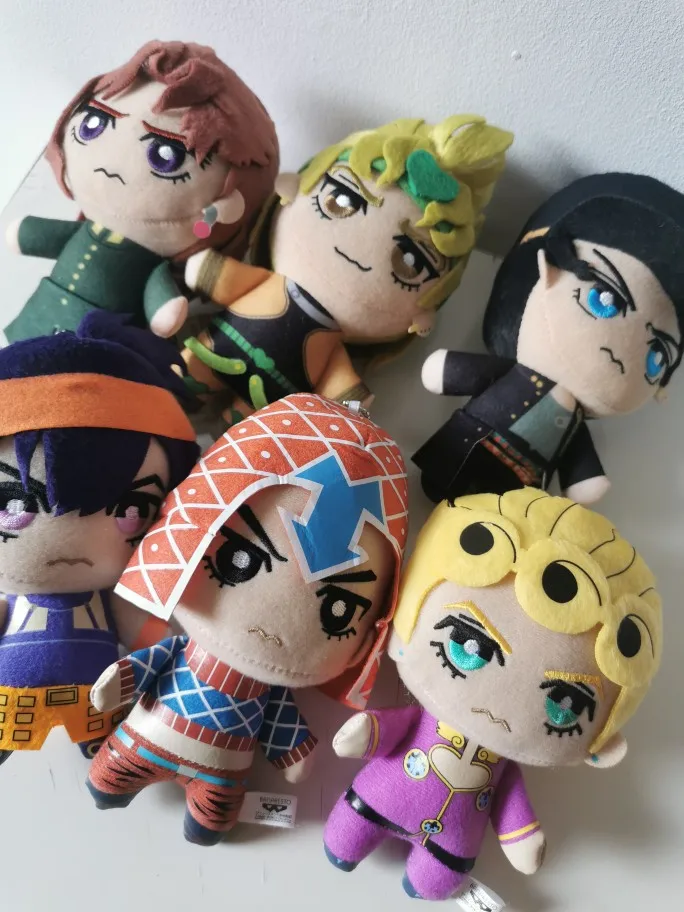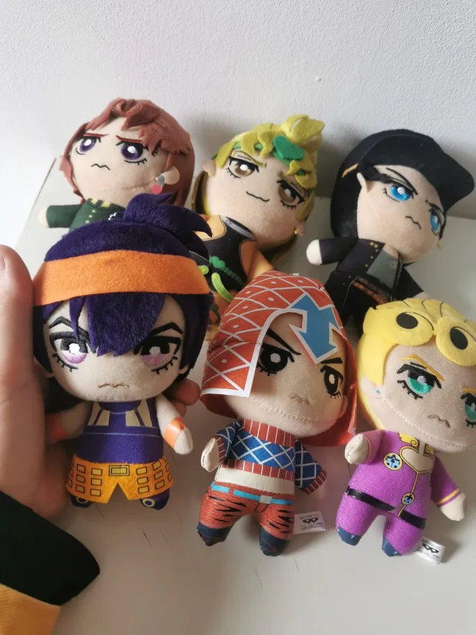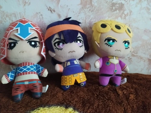 микроорганизмы просто прекрасны наконец то была собрана вся банда Буччеллати и планируется к заказу ещё плюшки ТК качество радует единственное у мисты под шапкой шов не ровный на попу похож но не критично лучше всего вышел Джорно Джованна особенно милый хвостик сзади товар отслеживался и пришел вовремя)