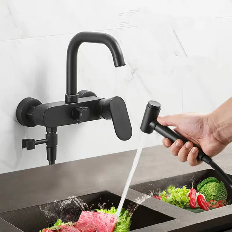 смеситель с длинным изливом Настенный Черный латунный кухонный кран с биде душ настенный смеситель для бассейна балкон Швабра бассейн пол кран