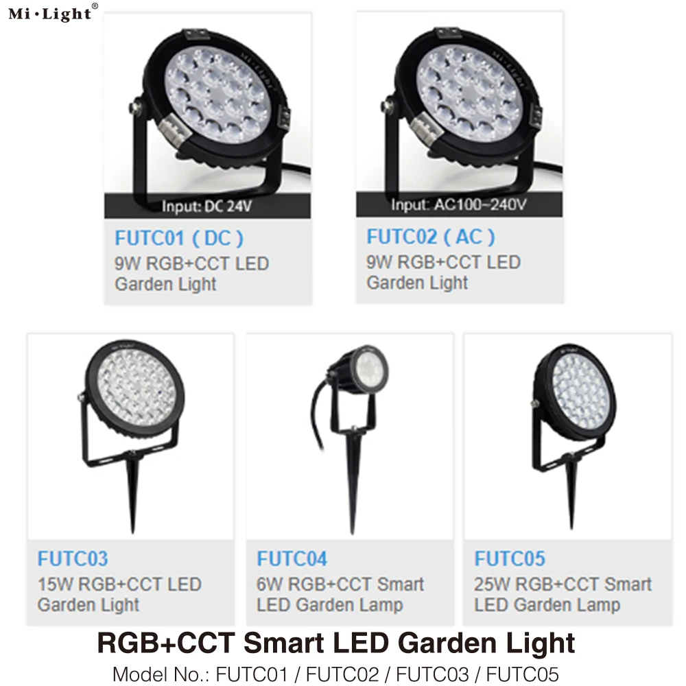 Водонепроницаемый садовый светильник для газона Milght FUTC01 FUTC02 FUTC03 FUTC04 FUTC05 IP65, 6 Вт, 9 Вт, 15 Вт, 25 Вт, RGB + CCT, 220 В переменного тока, 2,4 В, ГГц, дистанционное управление Wi-Fi