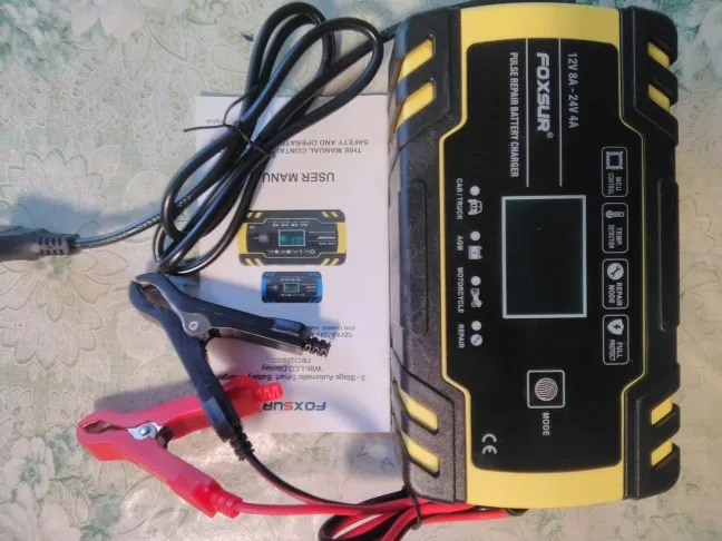 Зарядное устройство Foxsur, 1224 В, 8 А, для автомобилей, для батарей AGM, свинцово-кислотных, гелевых, жидкостных, импульсный заряд, восстановление, 3-ступенчатая умная зарядка