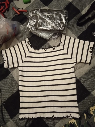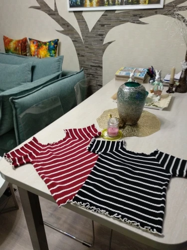 Футболка точно такая же как на фотографии, сидит классно, материал хороший, очень довольна покупкой Также в подарок продавец положил резинку под стиль футболки - приятный бонус) Спасибо продавцу!