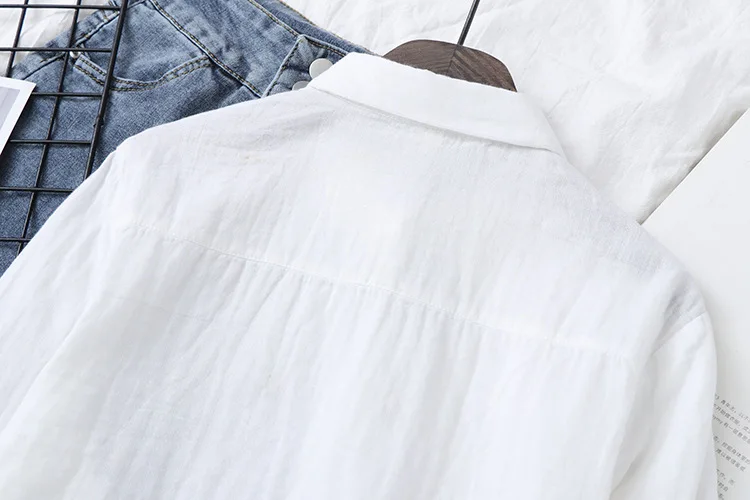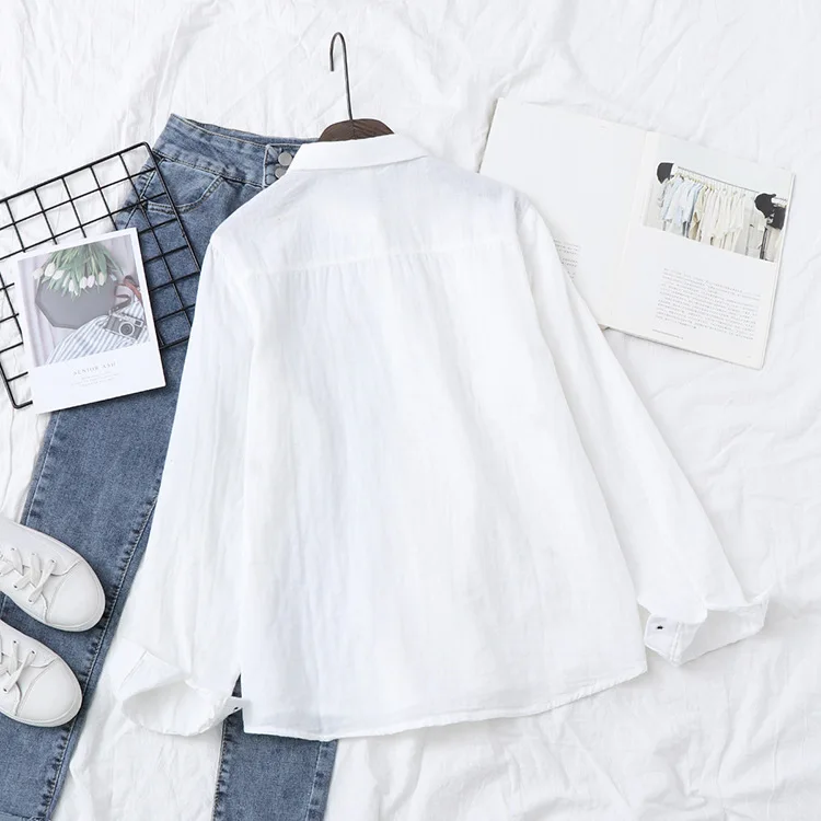 Женская Офисная рубашка с цветочной вышивкой, осенняя белая блузка, повседневные женские топы, женская рубашка, двойная хлопковая пряжа, одежда