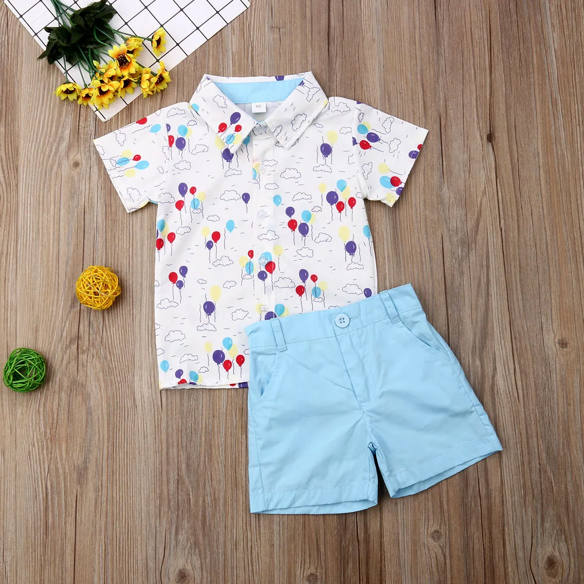Летняя одежда Pudcoco для маленьких мальчиков, рубашка с принтом воздушных шаров, костюмы из двух предметов, официальная одежда для джентльменов, летняя одежда
