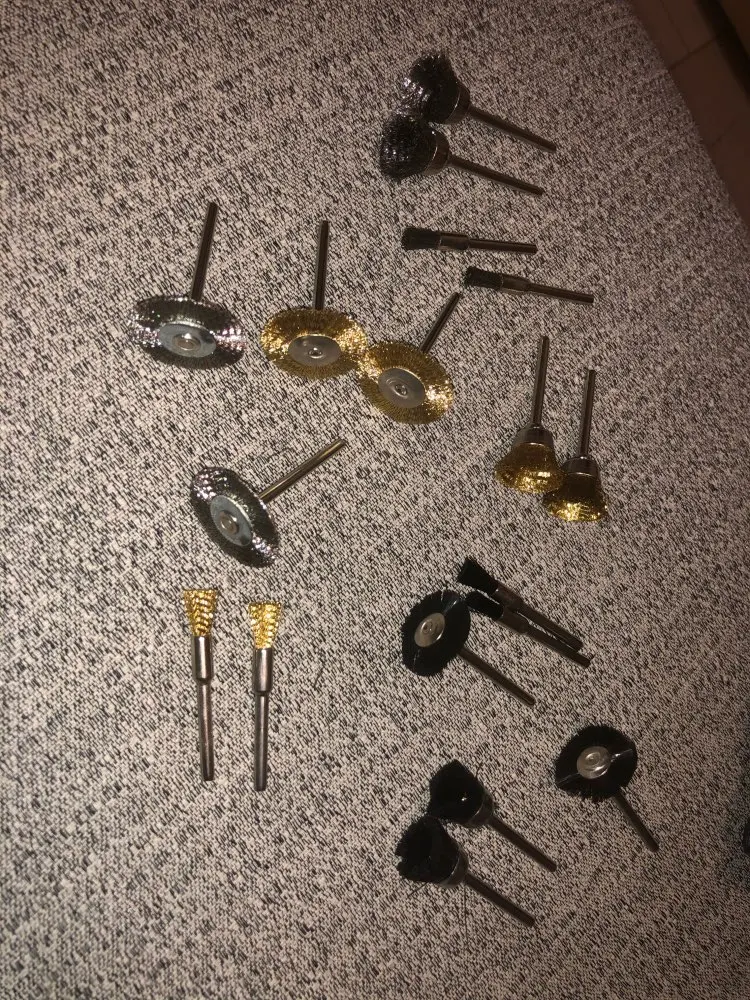 Щётки прикольные, набор большой, но мягковаты. Брал, чтобы подкрашивать жучки на машине. Краску снимать они не осиливают. Скорее для более тонкой зачистки. Не сказать, что расстроился, но ожидал большего. В целом заказом доволен.