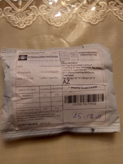 Страна: UZ Color: 63pc Доставка: Yanwen Economic Air Mail 20.05.2021