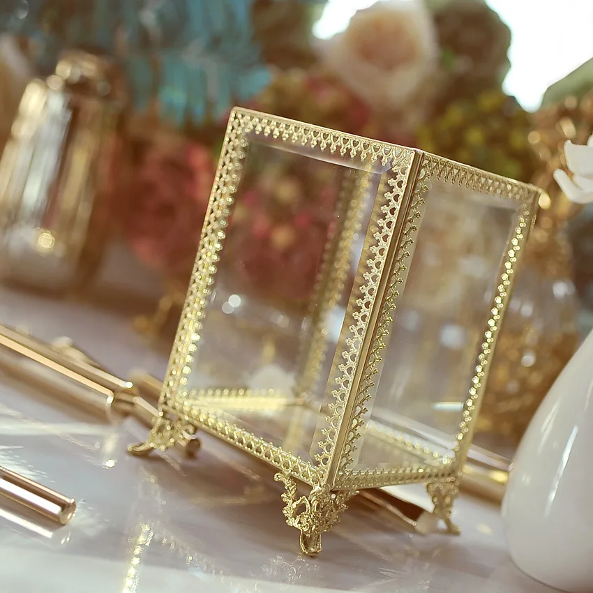 Новинка, Европейский стеклянный футляр для хранения кисточек для макияжа, карандаш для бровей, губная помада, органайзер для макияжа, ящик для хранения украшений с кристаллами, Прямая поставка