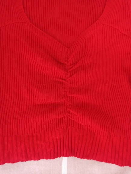 Женская трикотажная футболка с коротким рукавом и V-образным вырезом, однотонный эластичный кроп-топ, тонкий трикотаж, винтажный буф