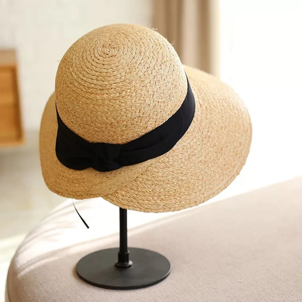 Панама женская с лентой и бантом, плетеная пляжная Соломенная Панама с широкими полями, с куполом, модная, элегантная