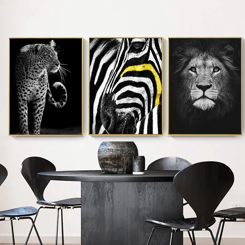 Черно-белая Картина на холсте с дикими животными, Лев, слон, леопард, тигр, Настенная картина для гостиной, настенные художественные плакаты с принтом