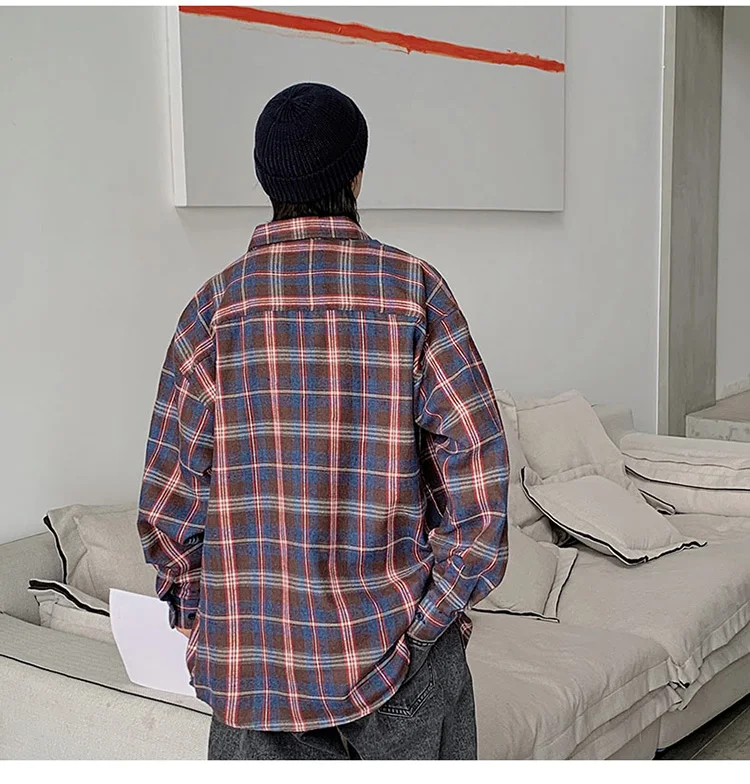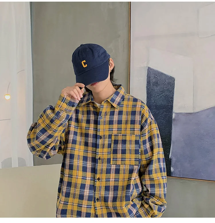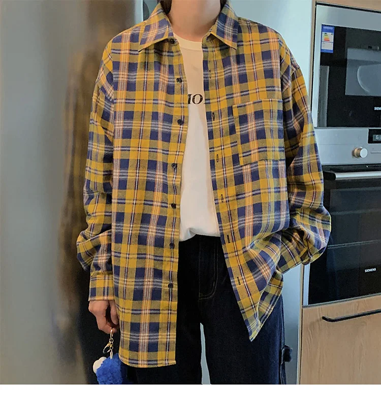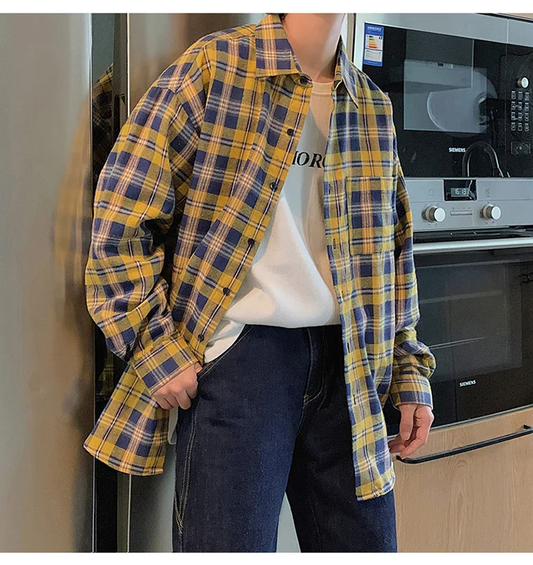 Рубашка LAPPSTER Мужская в клетку, уличная одежда в стиле K-POP, с длинным рукавом, в стиле Харадзюку, рубашка из хлопка в стиле хип-хоп, на пуговицах, большие размеры, 2022