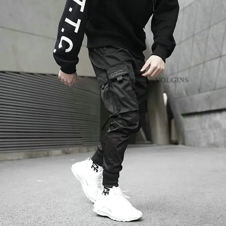 Прямая поставка 2020 хип-хоп штаны-шаровары для мальчиков с несколькими карманами мужские уличные повседневные брюки в стиле панк мужские брюки для бега по щиколотку