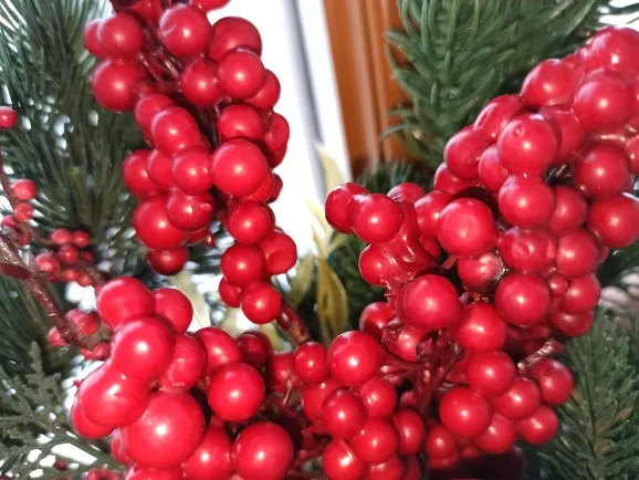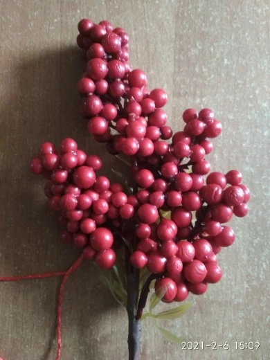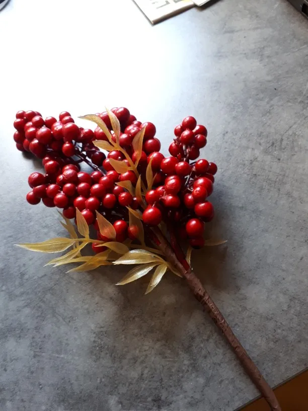 Посылка шла три недели, ветка выглядит сносно, хотя для такой веточки цена, считаю, огромная. Заказывала такую же у другого продавца, но намного дешевле-там была ещё хуже, слипшаяся и по пол ягодки. Эти ягодки тоже некоторые помяты и слипшиеся, мягкие, похоже, как из пенопласта. В букете с ветками будет смотреться нормально. Но цена, конечно, за такое ... Спасибо продавцу за маленький подарочек!!!