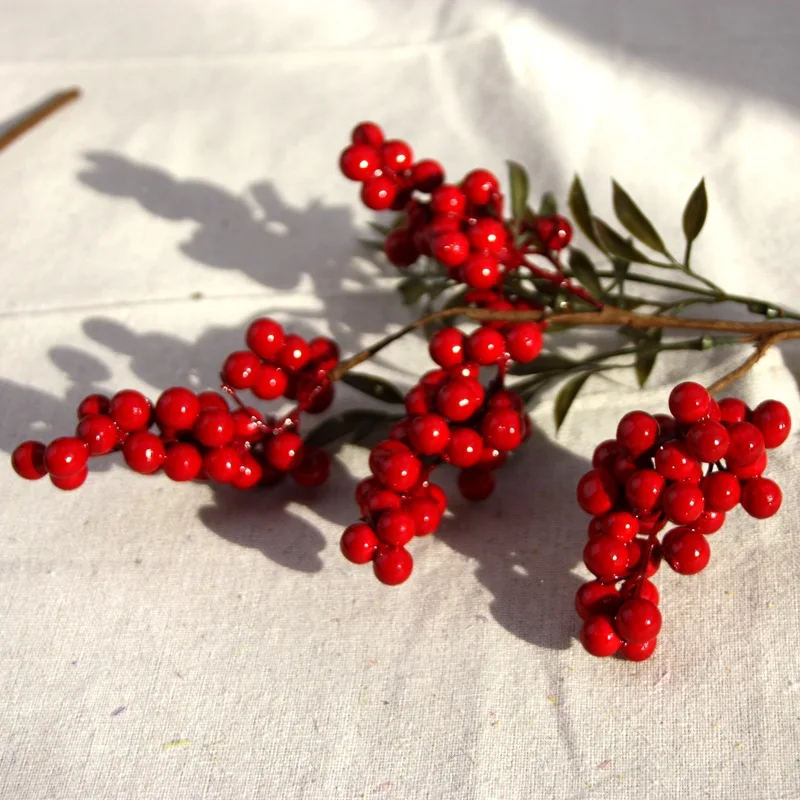 Искусственные красные ягоды, Рождественский цветок, новогодний декор, Искусственная елка, Рождественское украшение для дома, ягода, искусственный цветок