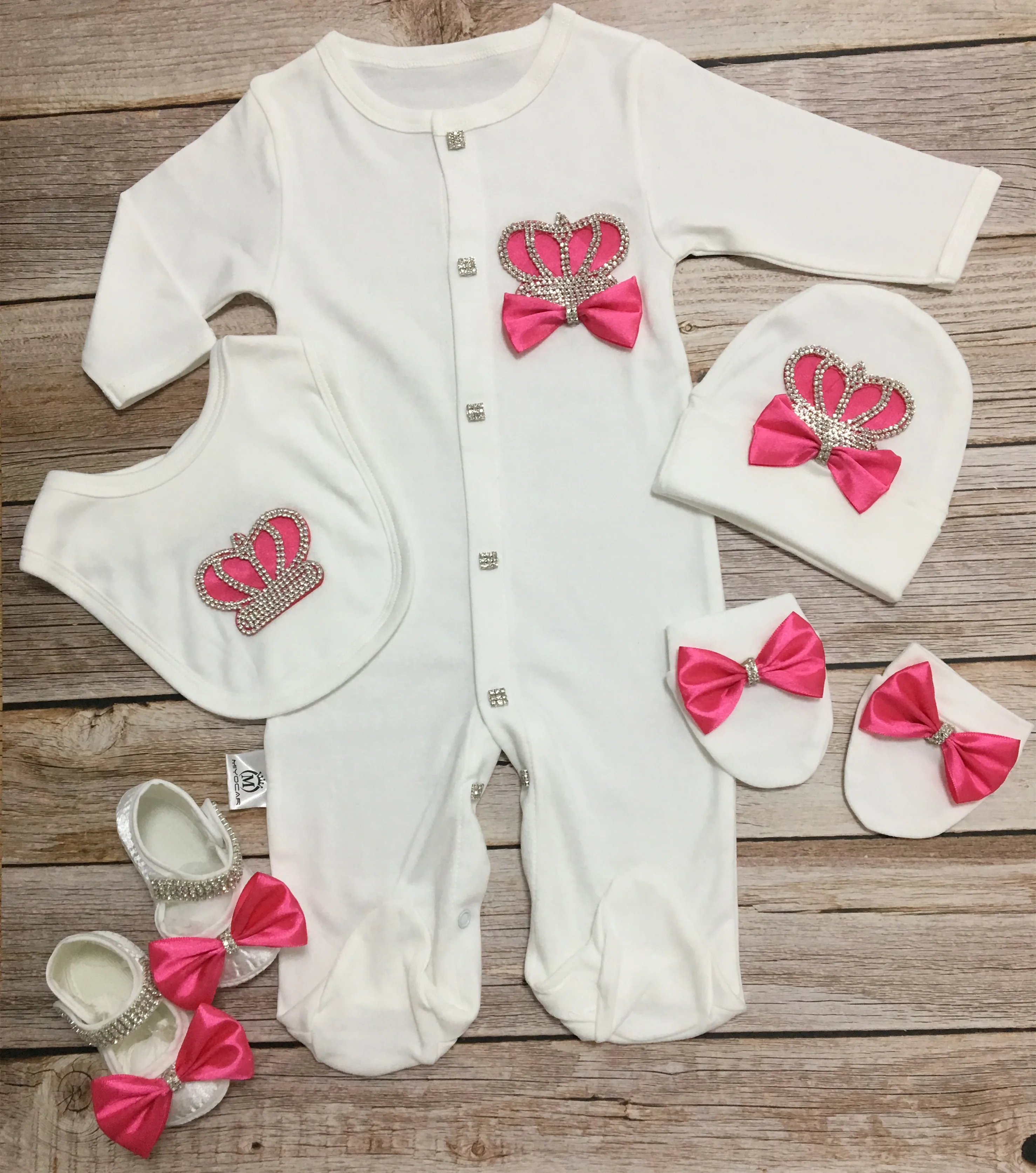 Сколько штук приносят: всего 5, один предмет, шляпа, нагрудник, обувь и детские перчатки.