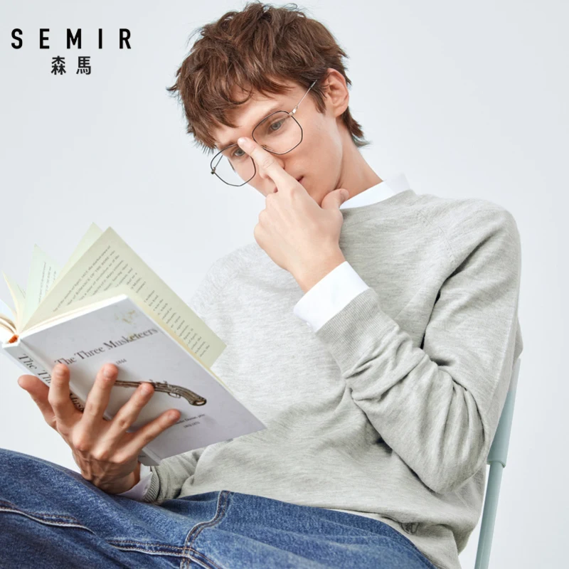Мужской трикотажный свитер SEMIR, повседневный джемпер с круглым вырезом, корейский Молодежный свитер с длинным рукавом, осень 2020