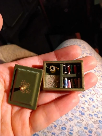 Красивая подарочная коробка с аксессуарами для шитья кукольного домика.