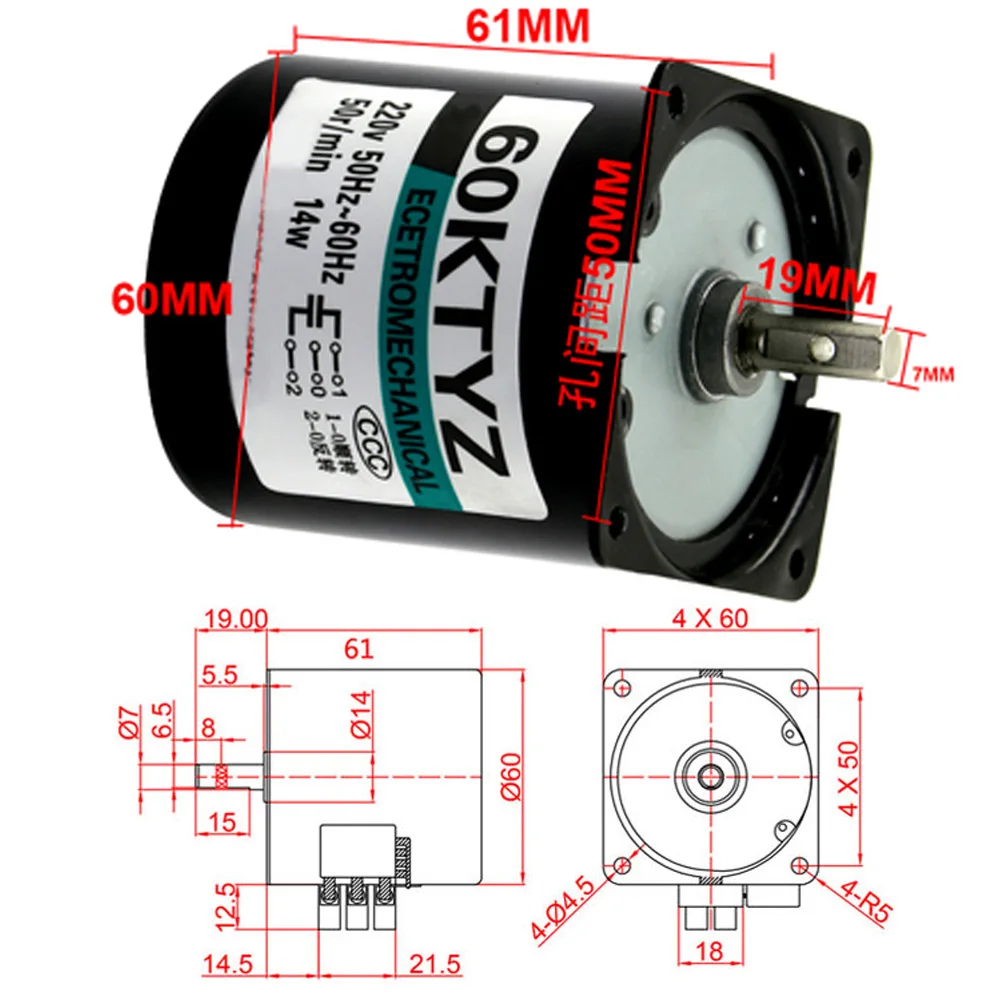 Высокий крутящий момент переменного тока постоянный магнит синхронный двигатель 220 В 14 Вт 60KTYZ обратный CWCCW Металл редуктор медленная скорость двигателя 2,5 To110RPM