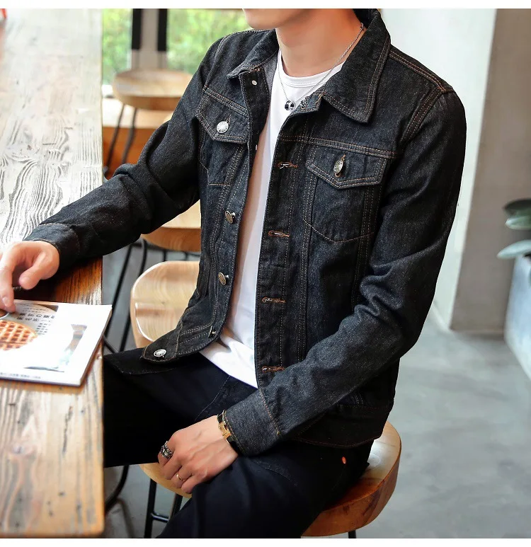 Джинсовая куртка мужская рваная, однотонная модная повседневная куртка-бомбер из денима, ковбойская Джинсовка, весна-осень