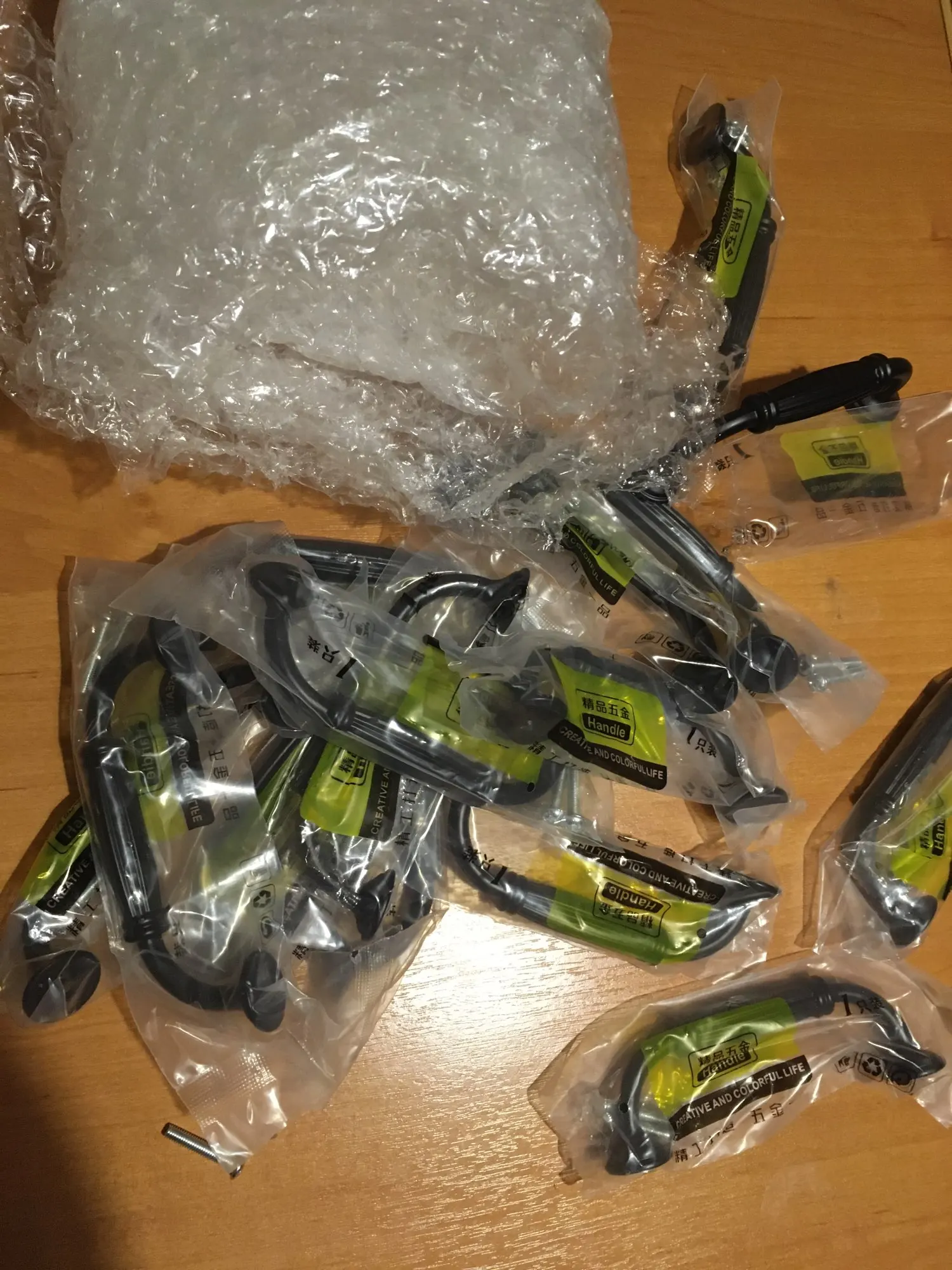 Очень быстрая доставка,упаковано просто отлично,каждая ручка в отдельном пакете,все завернуты в пупырчатый пакет и хорошенько перемотано скотчем,очень довольна.спасибо!!!!вид кухни сразу поменялся