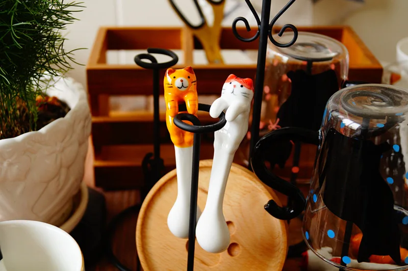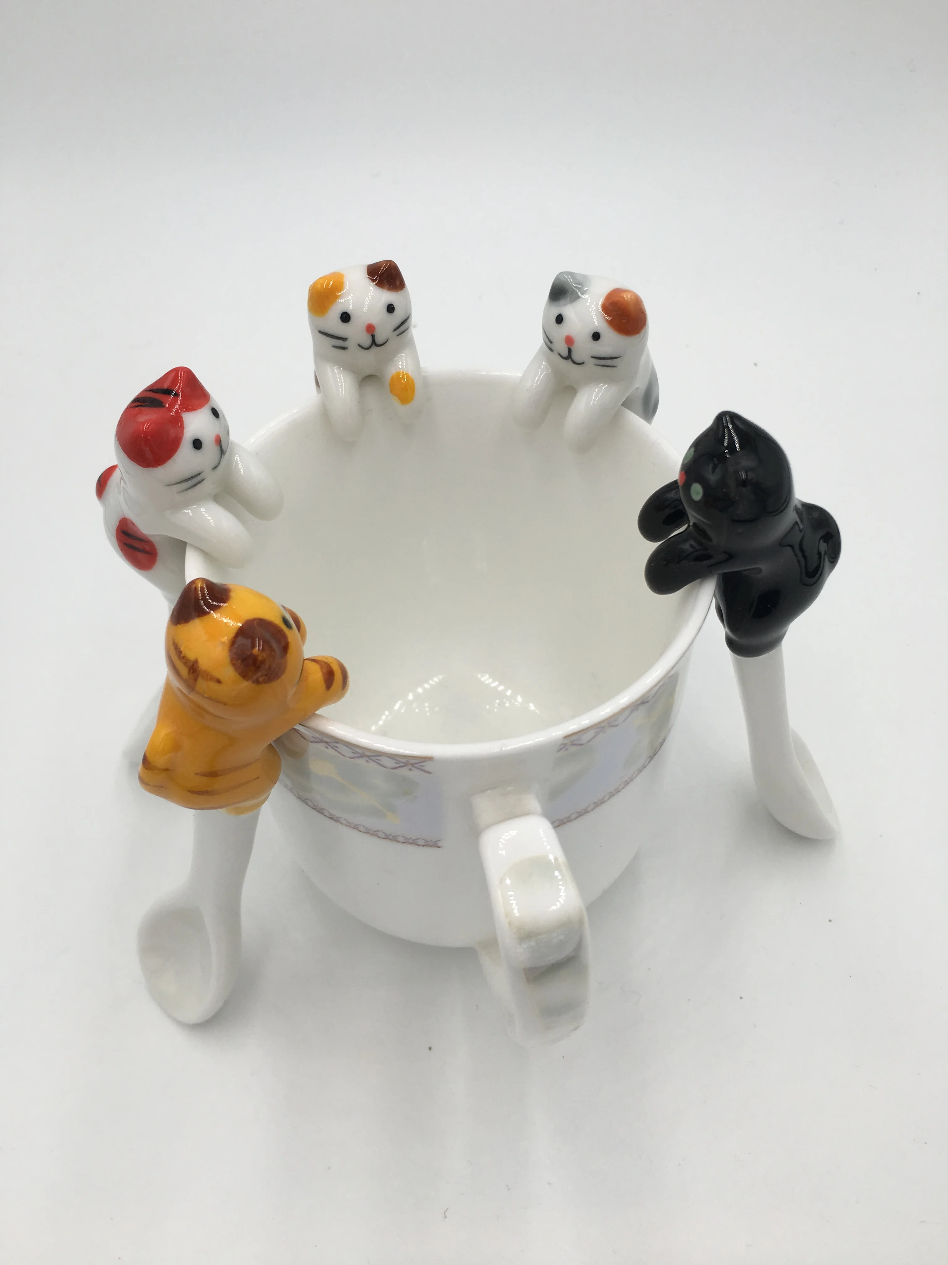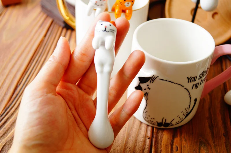 Креативная ложка, инструменты для питья, кухонный гаджет, столовые приборы, керамическая ложка для кофе и чая, мини-кошка, короткая ручка