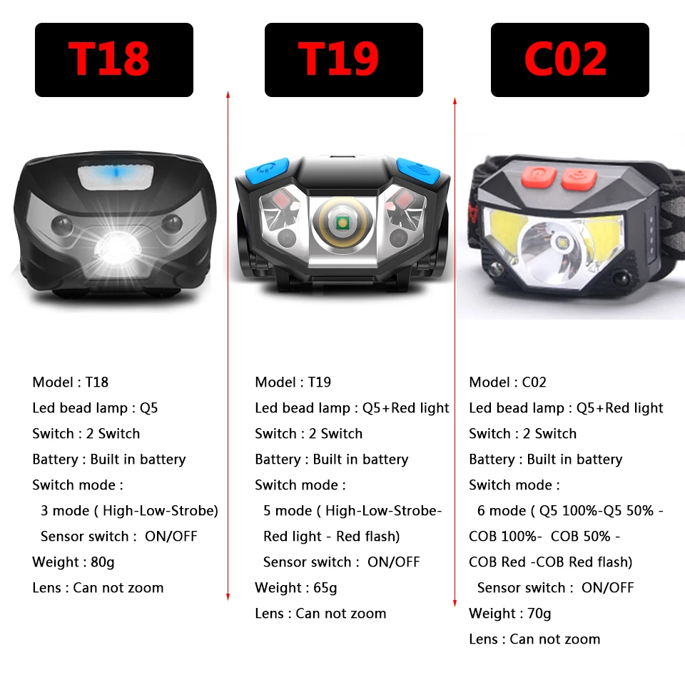 Светодиод: Cree LedРежим:5 режимовВысокий белый свет, низкий белый свет, белый свет SOS, 1 красный свет, 2красное освещение