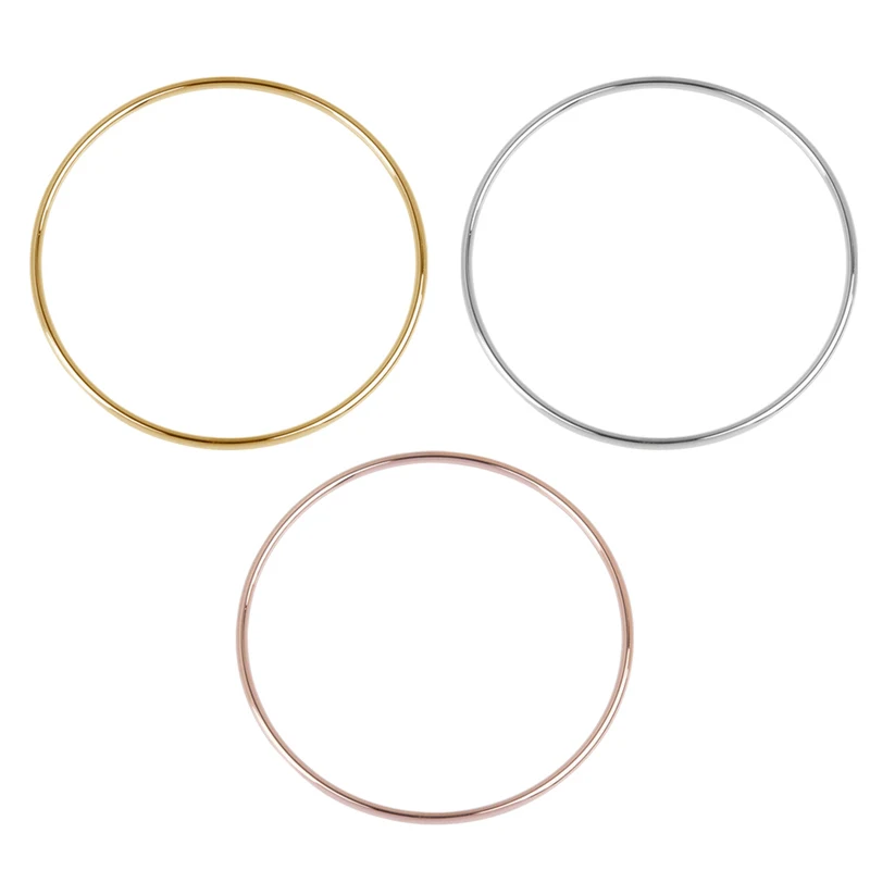 Браслеты из нержавеющей стали женские, простые круглые браслеты сер...