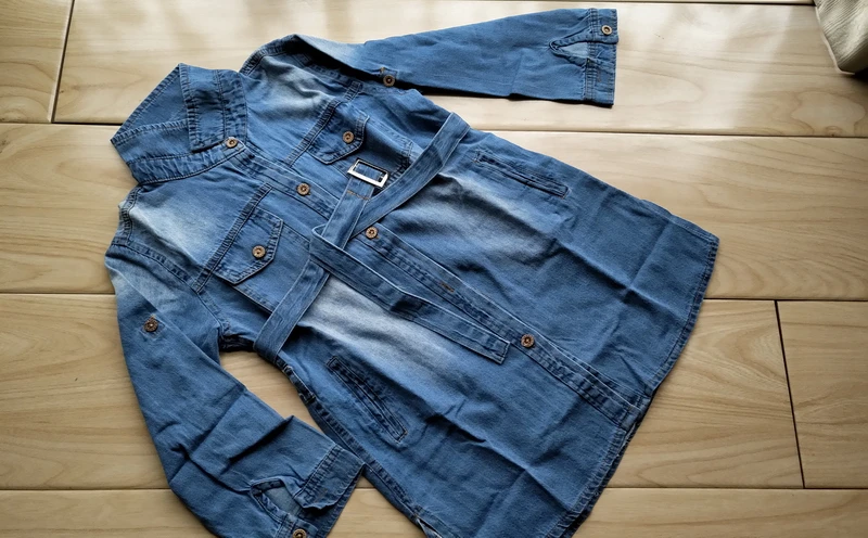 Джинсовая куртка для девочек на весну и осень, длинная джинсовая ку...